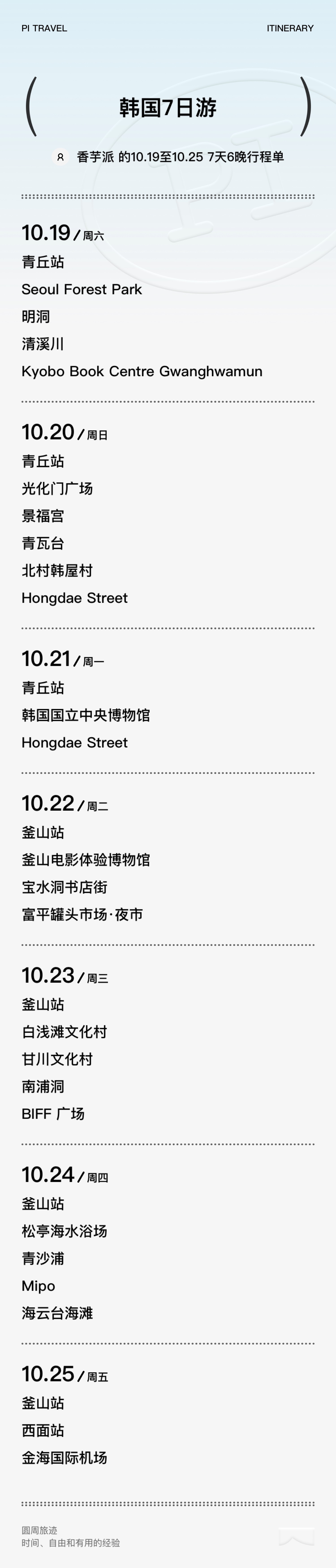 在听过小葱丰富多彩的不上班生活的分享之后,终于到了我的部分了,这位可怜的打工人只能在工作之余挪一些假期出来出去玩一趟,本来这趟旅行是我们要一起去大西北的,甚至我们都买好了私家小团在讨论时间了,最终因为小葱的搭子请不到假而放弃。所以我转头就约了朋友去了一趟韩国,于是就有了这期节目。