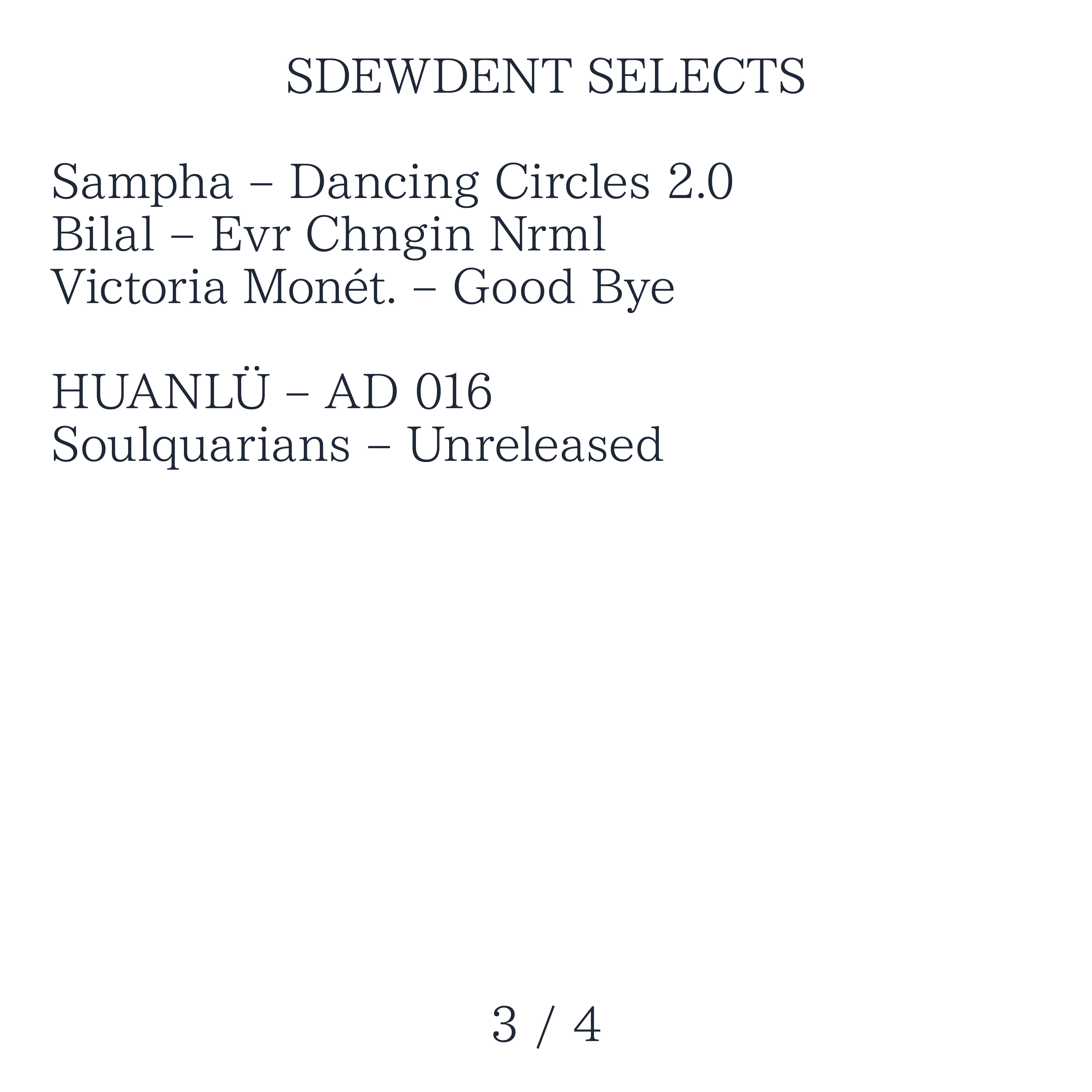 SDEWDENT SELECTS connects us to the current generation of fresh new music. This music is carefully selected by the highly gifted music producer and engineer SDEWDENT who is also part of the HUANLÜ family.