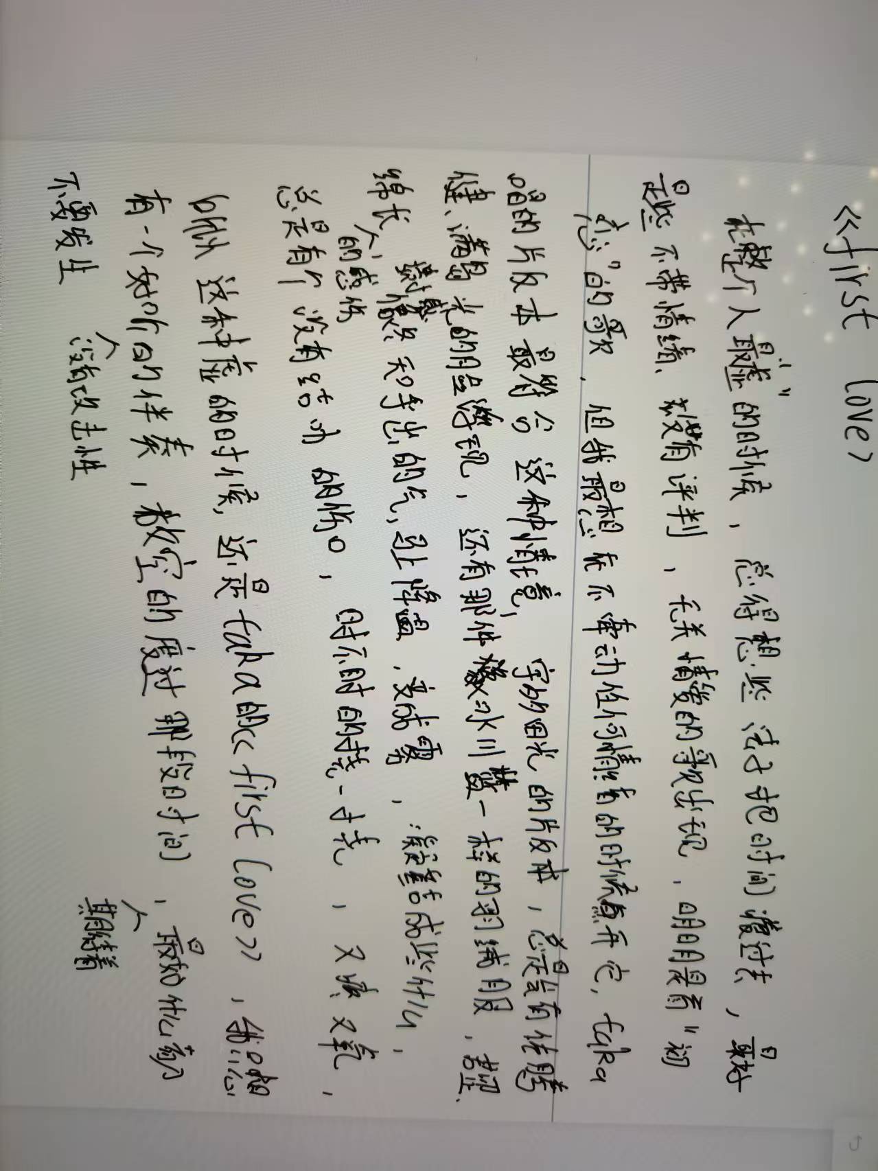 在整个人最“虚”的时候,总得想些法子度过去,最好是些不带情绪没有评判,无关情爱的歌出现,明明是首“初恋”的歌,但我最想在不牵动任何情绪的时候点开它,taka唱的版本最符合这个情境,宇多田光的版本,总是会有佐藤健、满岛光的脸浮现,还有那件冰场蓝一样的羽绒服,苦涩、绵长的伤感、遗憾,像冬天呼出的气,马上降温,变成雾,凝结成些什么,总是有个没有结痂的伤口,时不时挠一挠,又疼又痒,所以这种“虚”的时候,还是taka唱的这版《first love》最好,我只想有个舒服的伴奏,放空的度过那段时间,期待着最好什么都不要发生