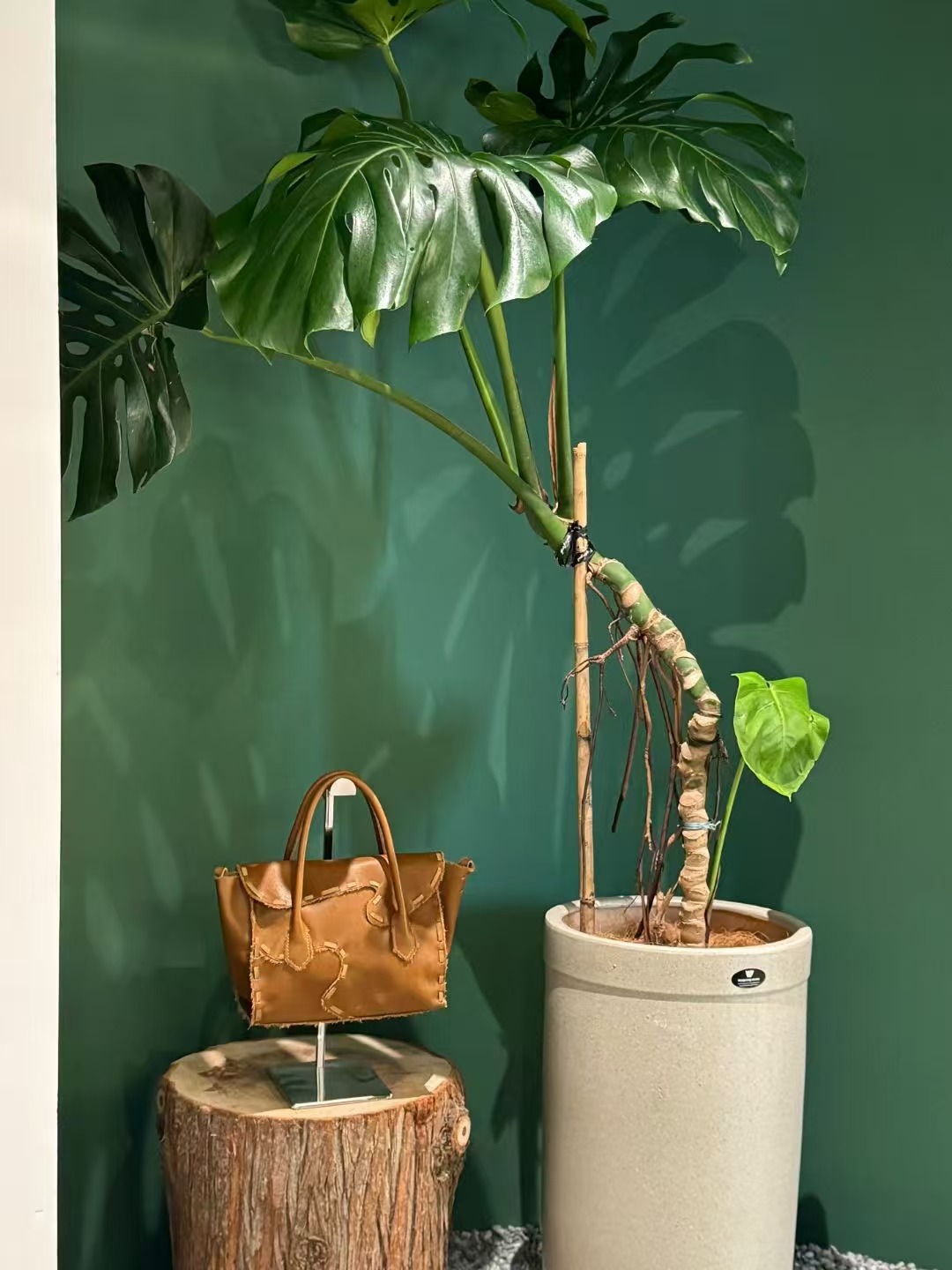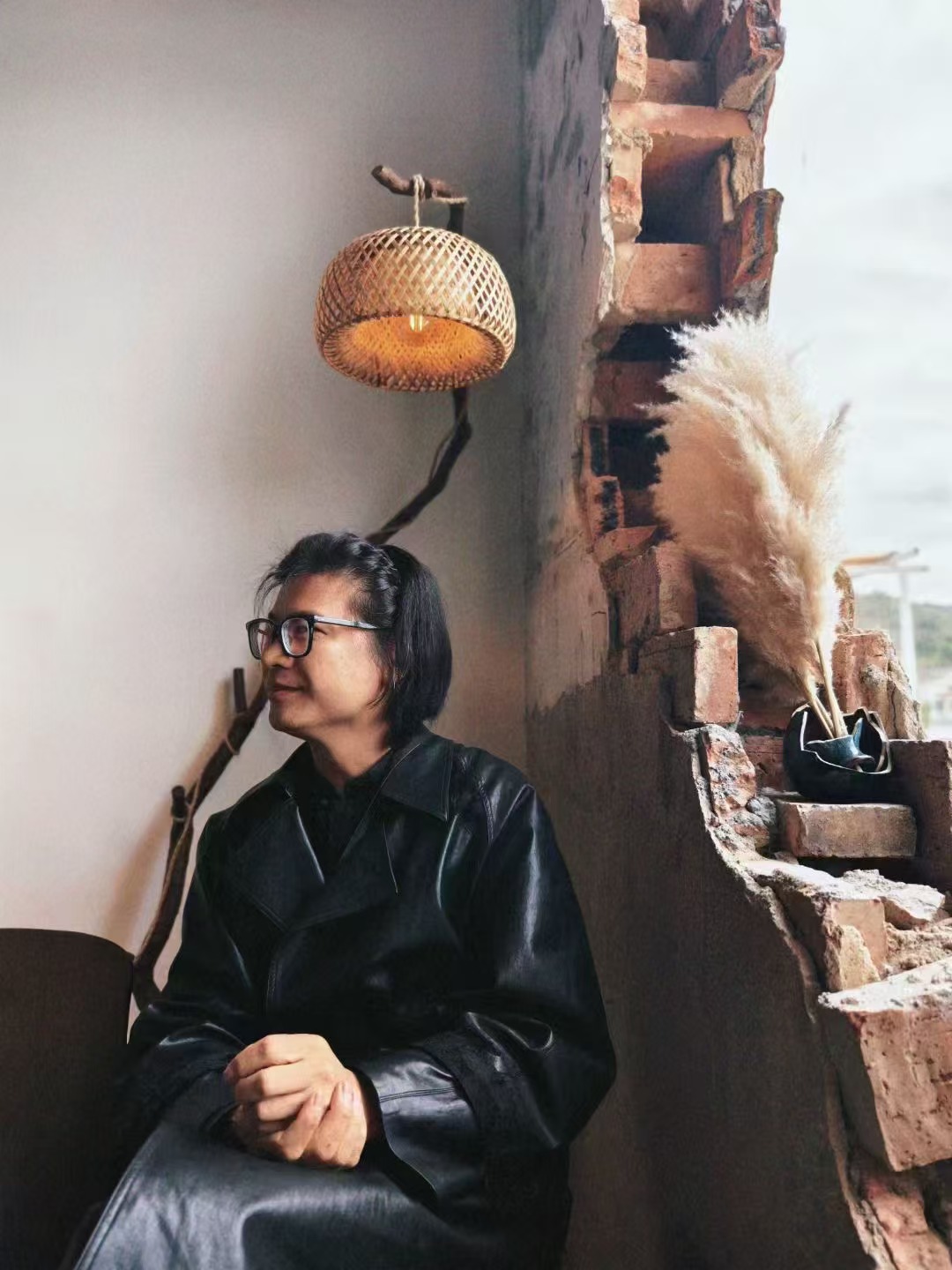 这一期播客的缘起很有趣,有一天我在东钱湖的利民村闲逛,突然发现了一个很特别的空间,从众多的网红空间中跳脱出来钻入了我的视线,他的装修不是千篇一律的网红风,更像是在原来斑驳的老房子里装进了一个微缩的森林,里面泉水叮咚水汽氤氲,外墙大胆地用了赤陶色,窗户更是脑洞大开!于是他成功地激起了我的探索欲,进入空间碰到老板刚好在里面,身着一席黑色皮风衣斜挎了一个手机袋,说起话来滔滔不绝也总是笑眯眯的!
