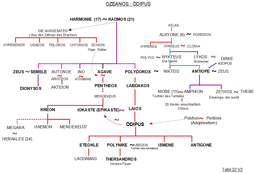 “欧洲文明史上最著名的创始神话源自底比斯城。他们创造了安提戈涅和俄狄浦斯这两个至今仍在文学、哲学和心理学中发挥核心作用的人物。然而,他们的祖先和亲戚狄俄尼索斯、拉伊奥斯和伊奥卡斯特也绝不逊色于他们。忒拜神话中的悲剧所涉及的冲突具有很强的现实意义,长期以来一直在现代社会的表层下暗流涌动。