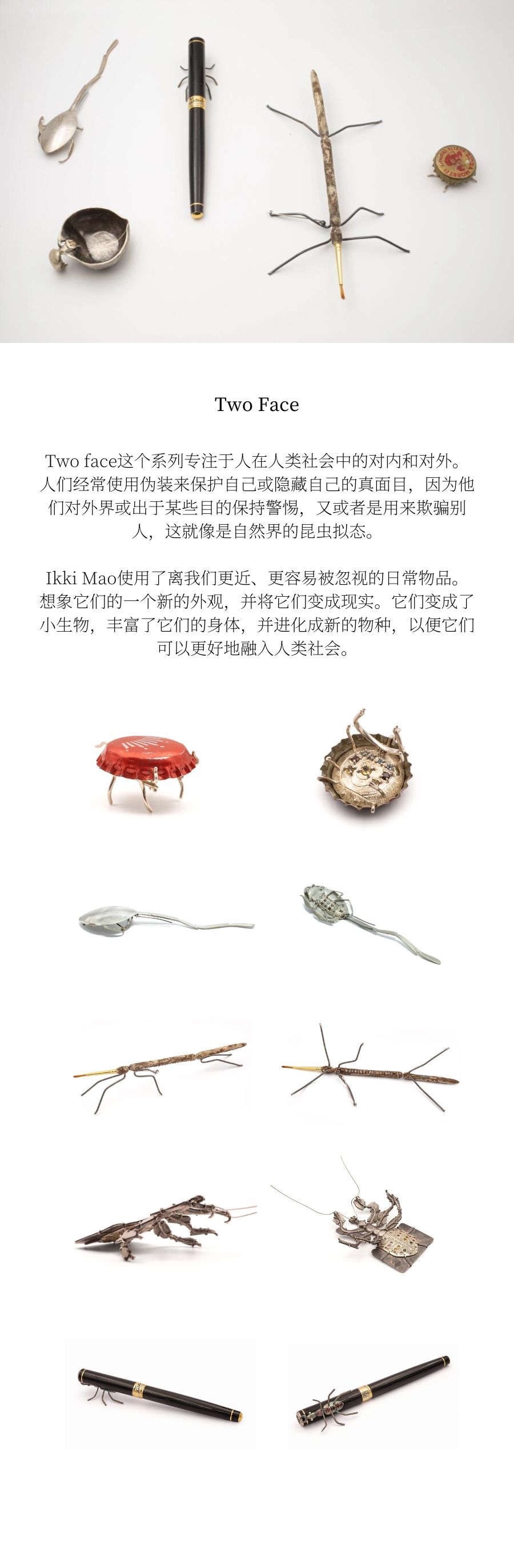 他从构建腹甲类昆虫的习性。理性地将每个昆虫的习性模拟 生活方式梳理。构成了Ikki Mao的创作脉络。