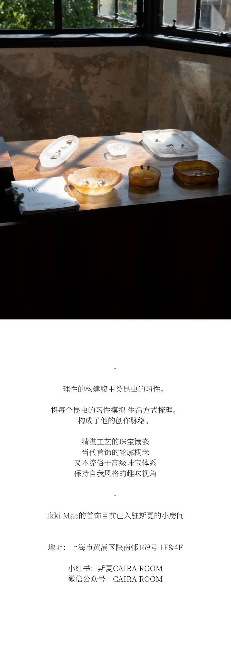 今天对话的是Caira Room合作的一位首饰设计师 —— Ikki Mao。