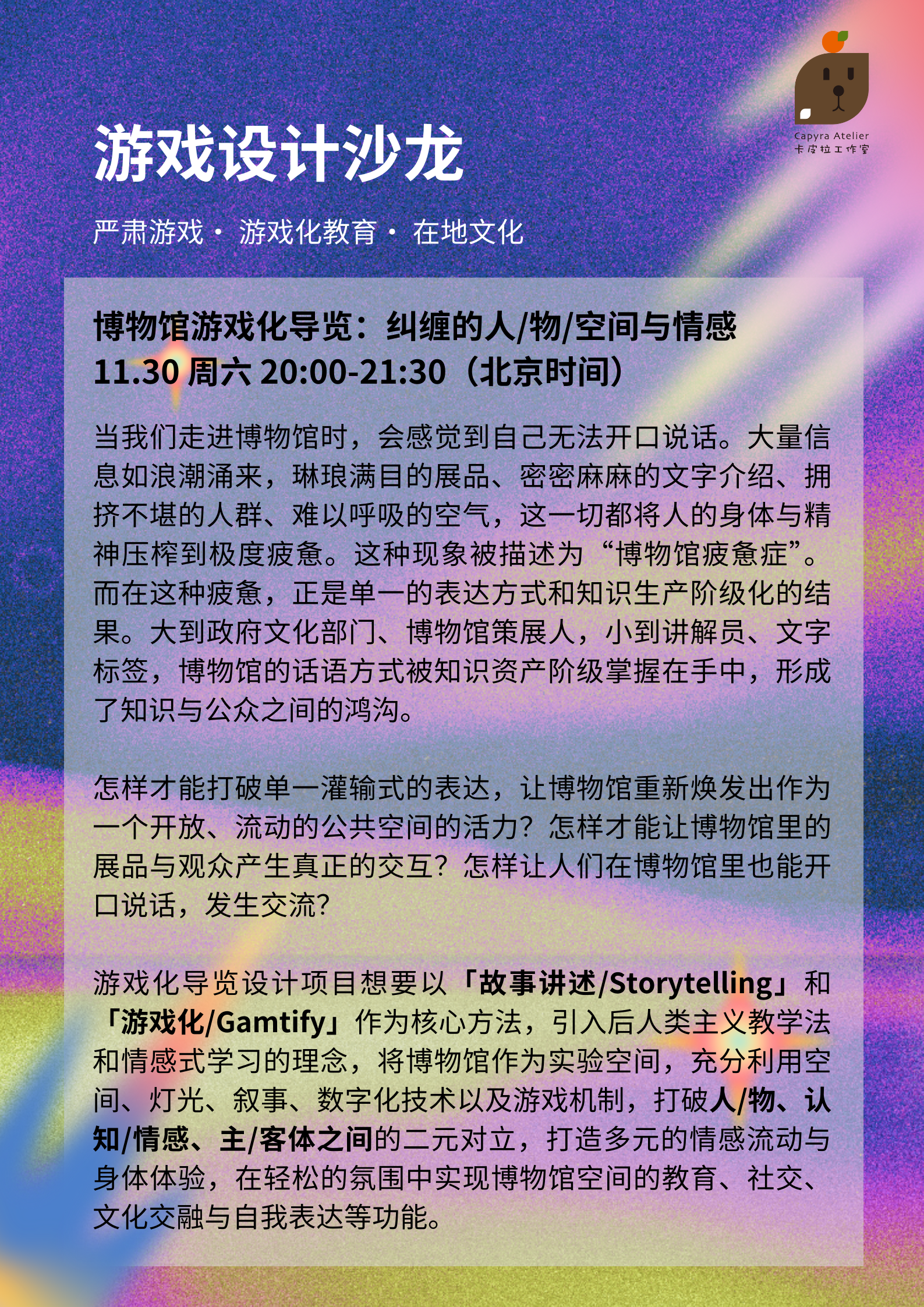游戏设计沙龙第四期|博物馆游戏化导览:纠缠的人/物/空间与情感