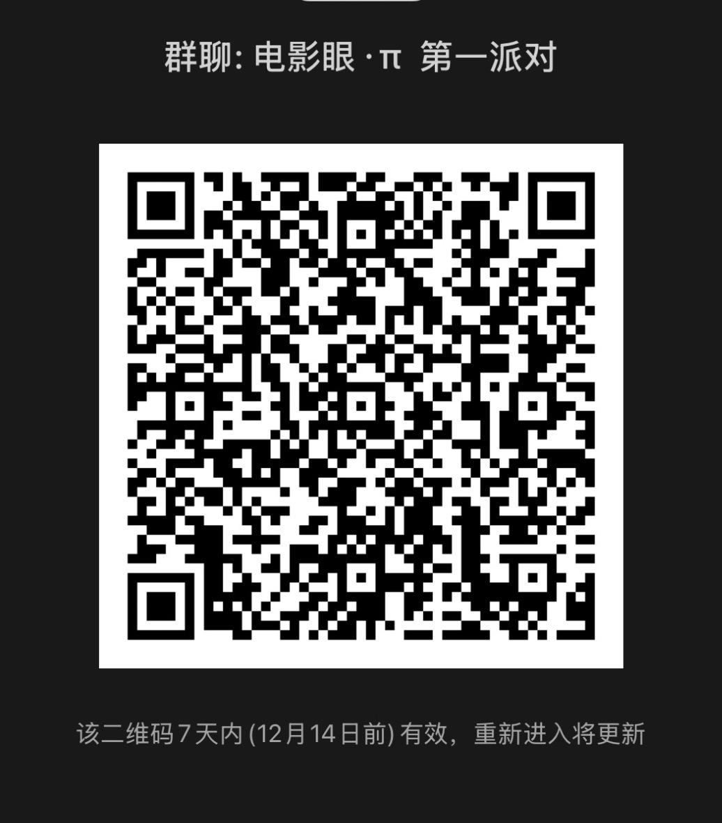喜欢本期节目的朋友们,还有喜欢电影的朋友!请扫码入群,一起进入电影眼·π 派对!
