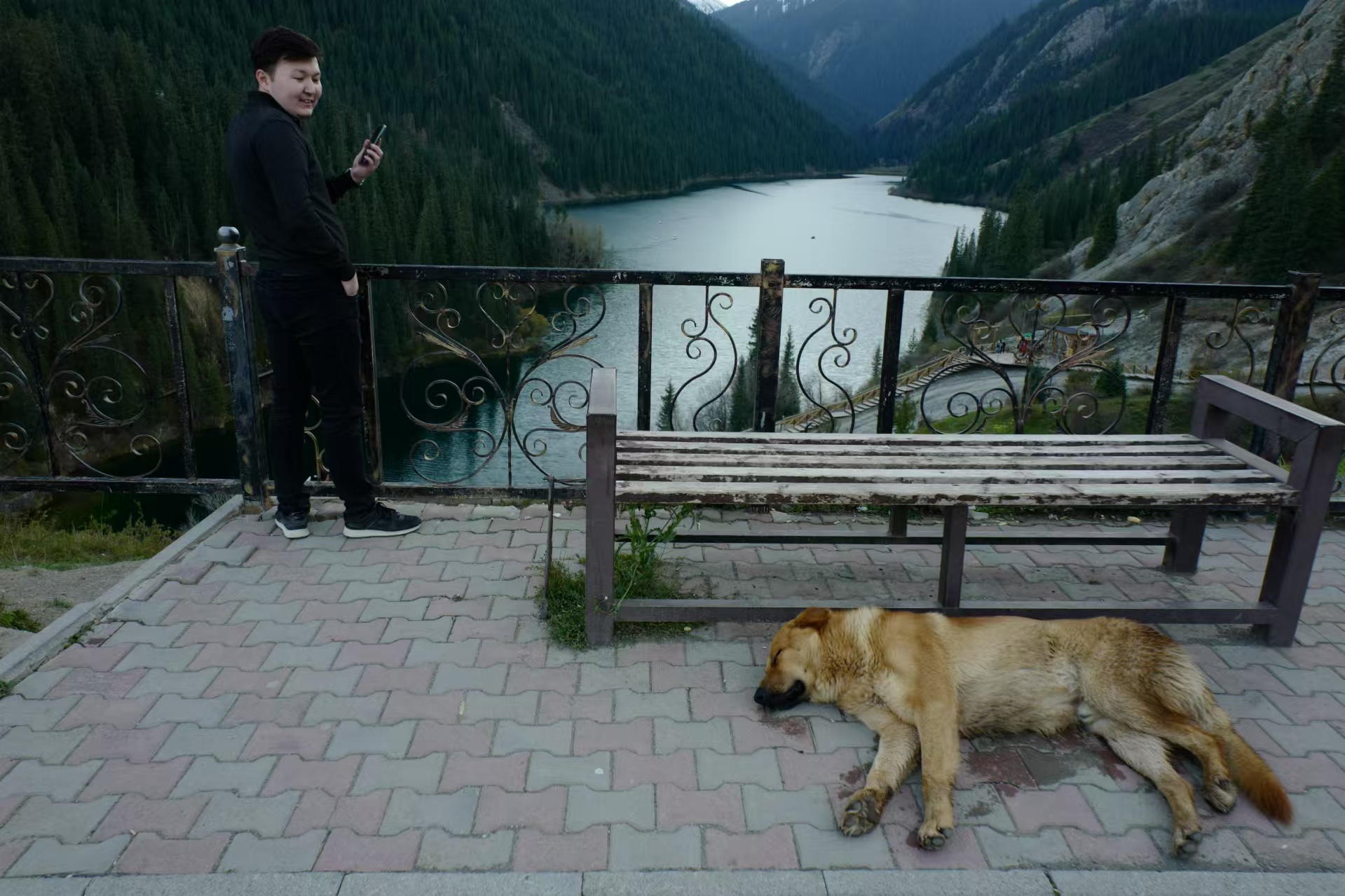 12:45 【照片分享】科尔塞湖和天山同行,我和金基德电影《溶解》的最后一个场景不期而遇。哈萨克斯坦是流浪狗友好型国家,这里的狗没有焦虑困扰,行人来来往往也能安然入眠