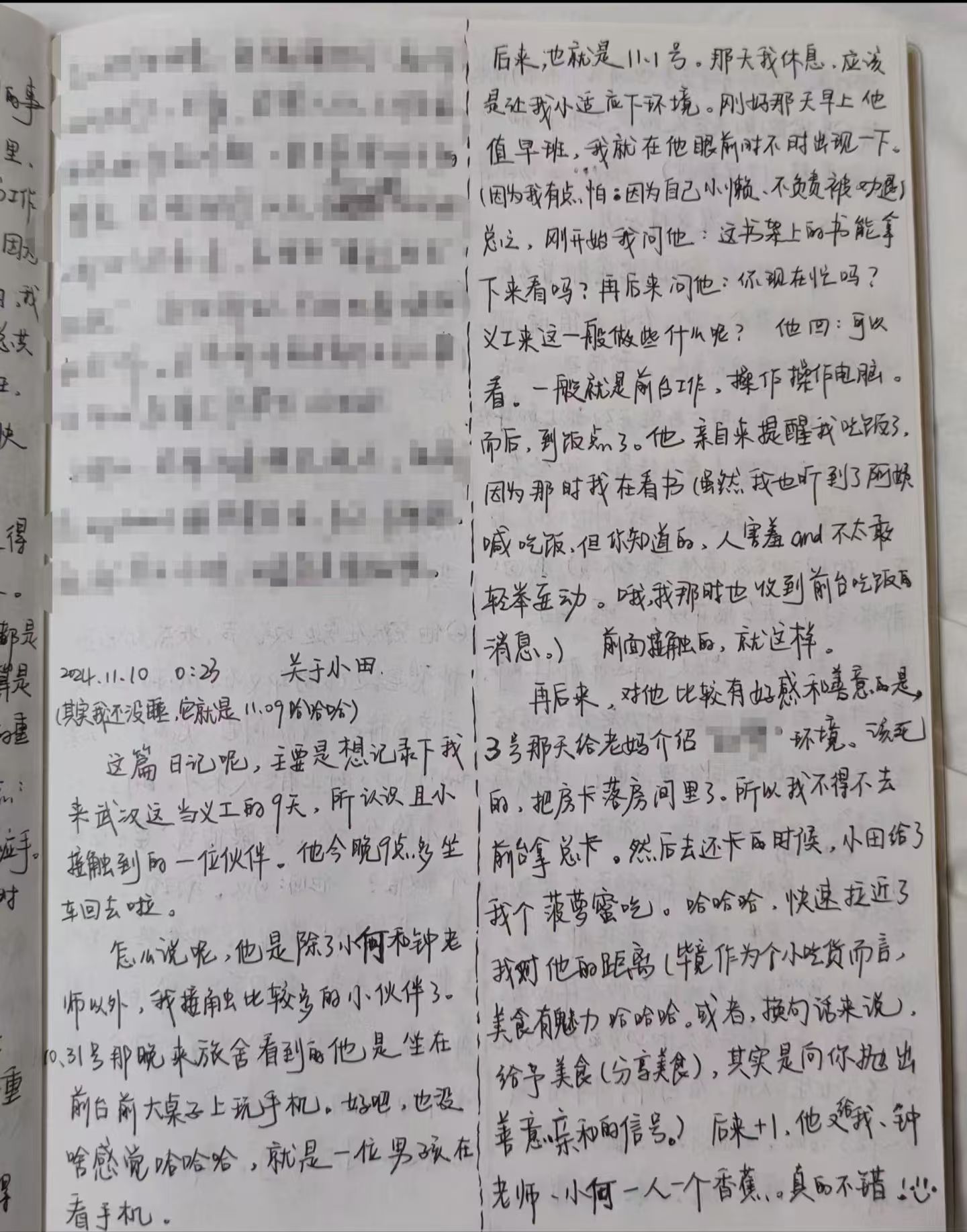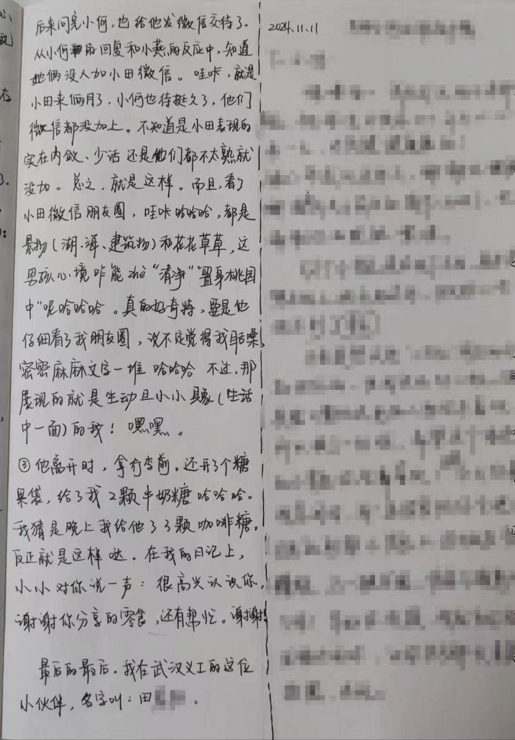 日记本中,我用文字记录下的小田。
