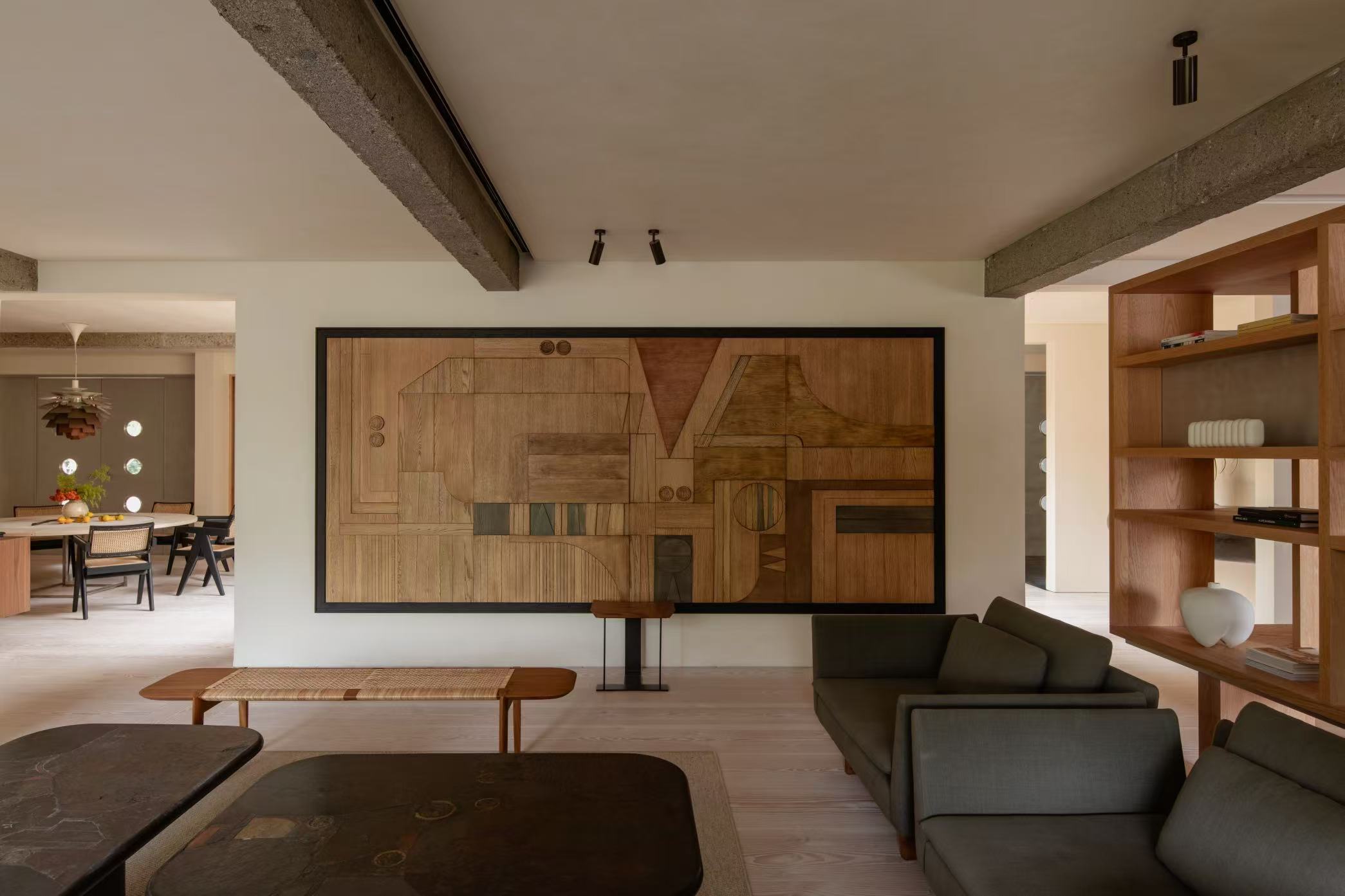 haus101将这一理念融入建筑本身,展厅一层带来101 Copenhagen, Monstructure, Phantom Hands, Santa & Cole, Serax, Piet Hein Eek, Faye toogood等设计品牌,同时展出经典收藏中古家具,二层则是作为住宅体验的101+ Guest House, 以⼀个完整的居家环境场景化呈现。