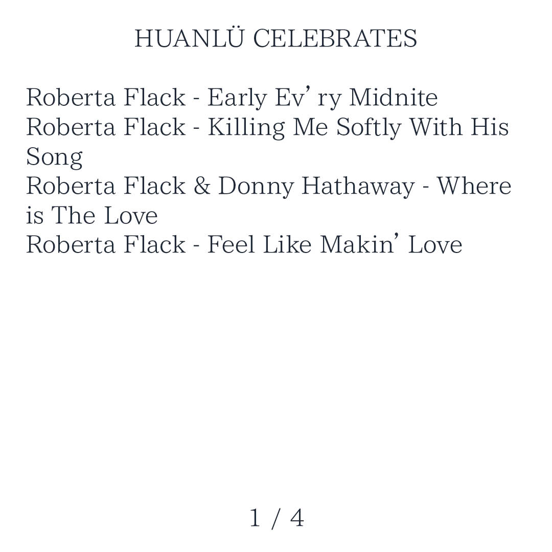 接下来,我们将庆祝一位真正的音乐传奇----罗伯塔·弗莱克(Roberta Flack)的永恒艺术魅力。以她充满灵魂的嗓音和情感深度而闻名,罗伯塔为我们带来了许多令人难忘的经典之作,例如《Killing Me Softly with His Song》和《The First Time Ever I Saw Your Face》。作为一位受过古典训练的钢琴家,也同时是音乐界的开拓者,她打破了界限,成为第一批连续两年获得格莱美年度制作奖的艺术家之一,在当时男性主导的行业中展现了她非凡的才华,以优雅与灵魂重新定义了R&B和流行音乐。