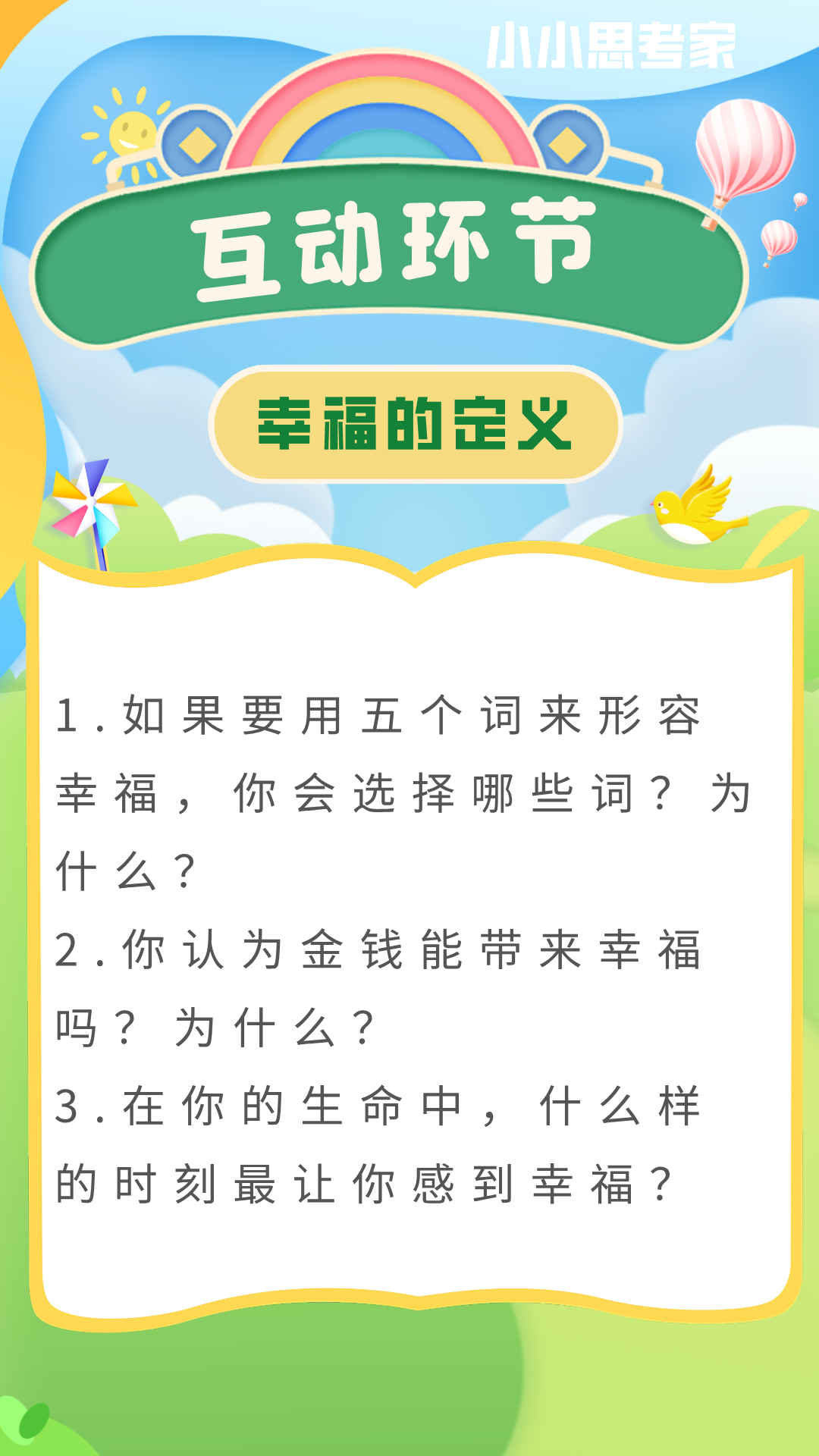 • 提出问题:最近或印象最深的幸福事情是什么?