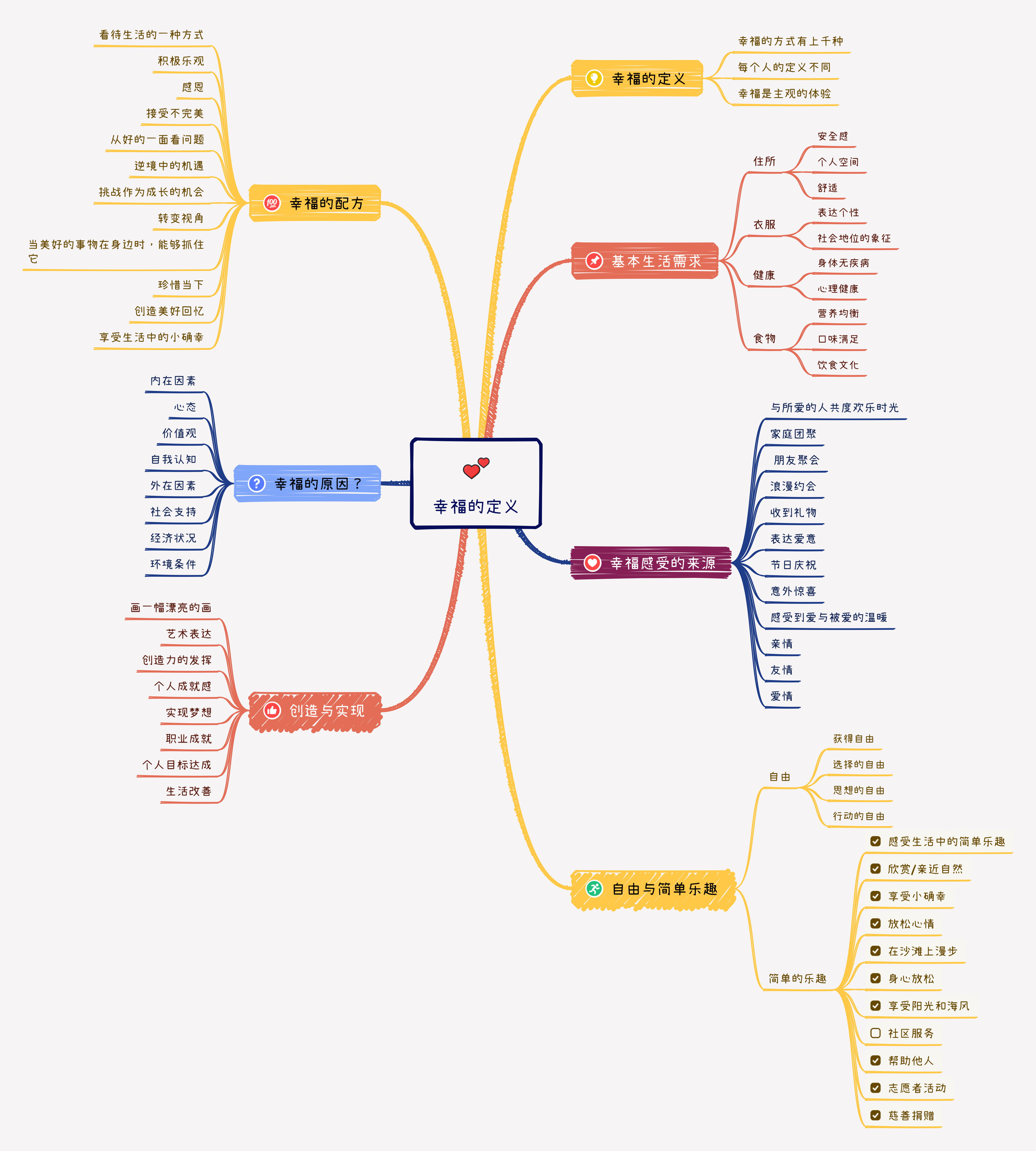 • 提出幸福的定义多样,如事业有成、家庭美满、享受美食等。