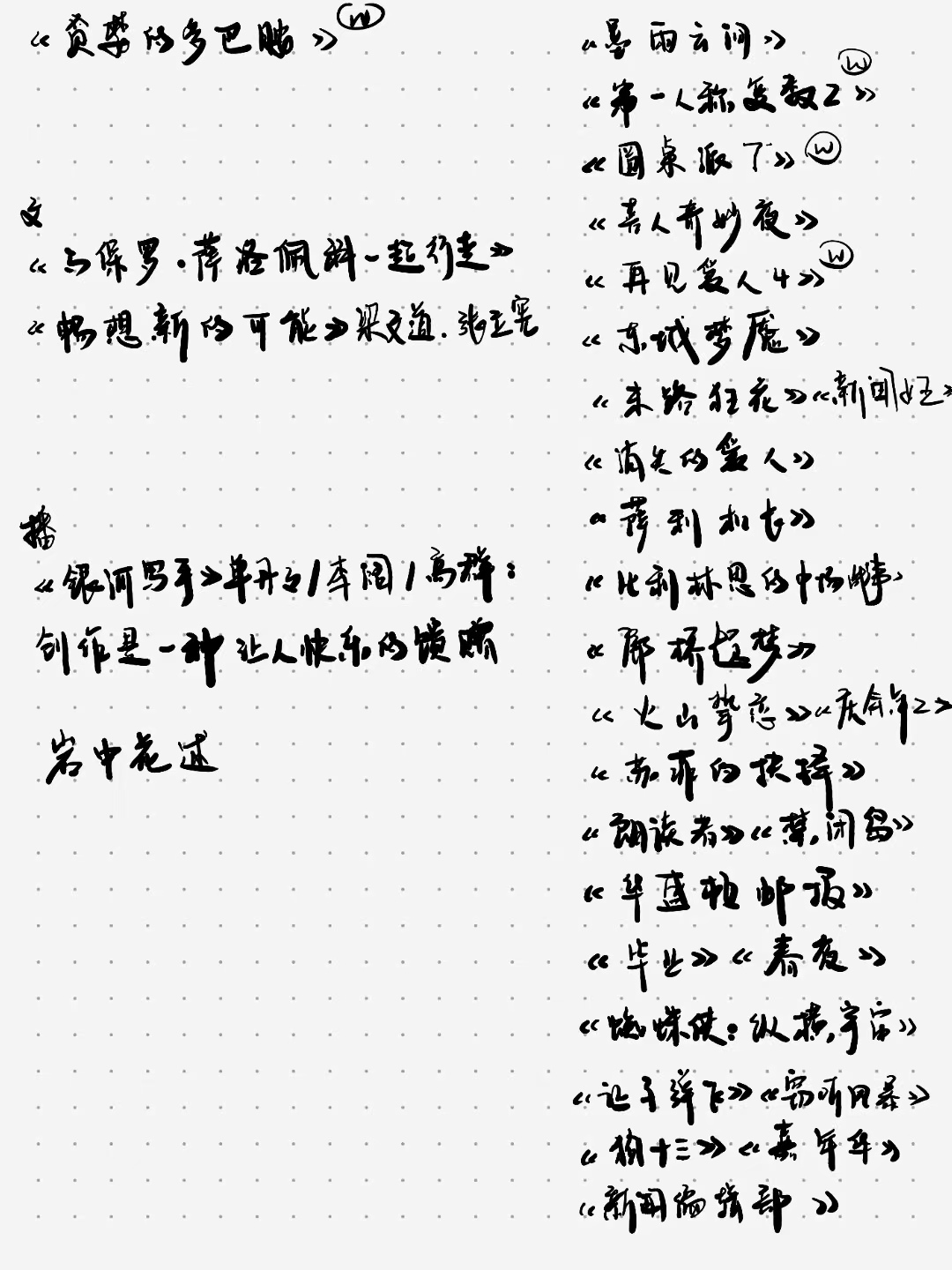 更正 1:18:00 这里提到的《贪婪的多巴胺》书里的话我说错了,应该是 “从多巴胺的角度来说,拥有是无趣的,只有获得才有趣。”shownotes:今年看过的能想起来的作品,左边一列是书籍,右边一列是影视。记录一下音轨2023年是第一次记录,录的播客是 V10. 有幸遇见:2023年内容总结。去年手写的也放在这里: