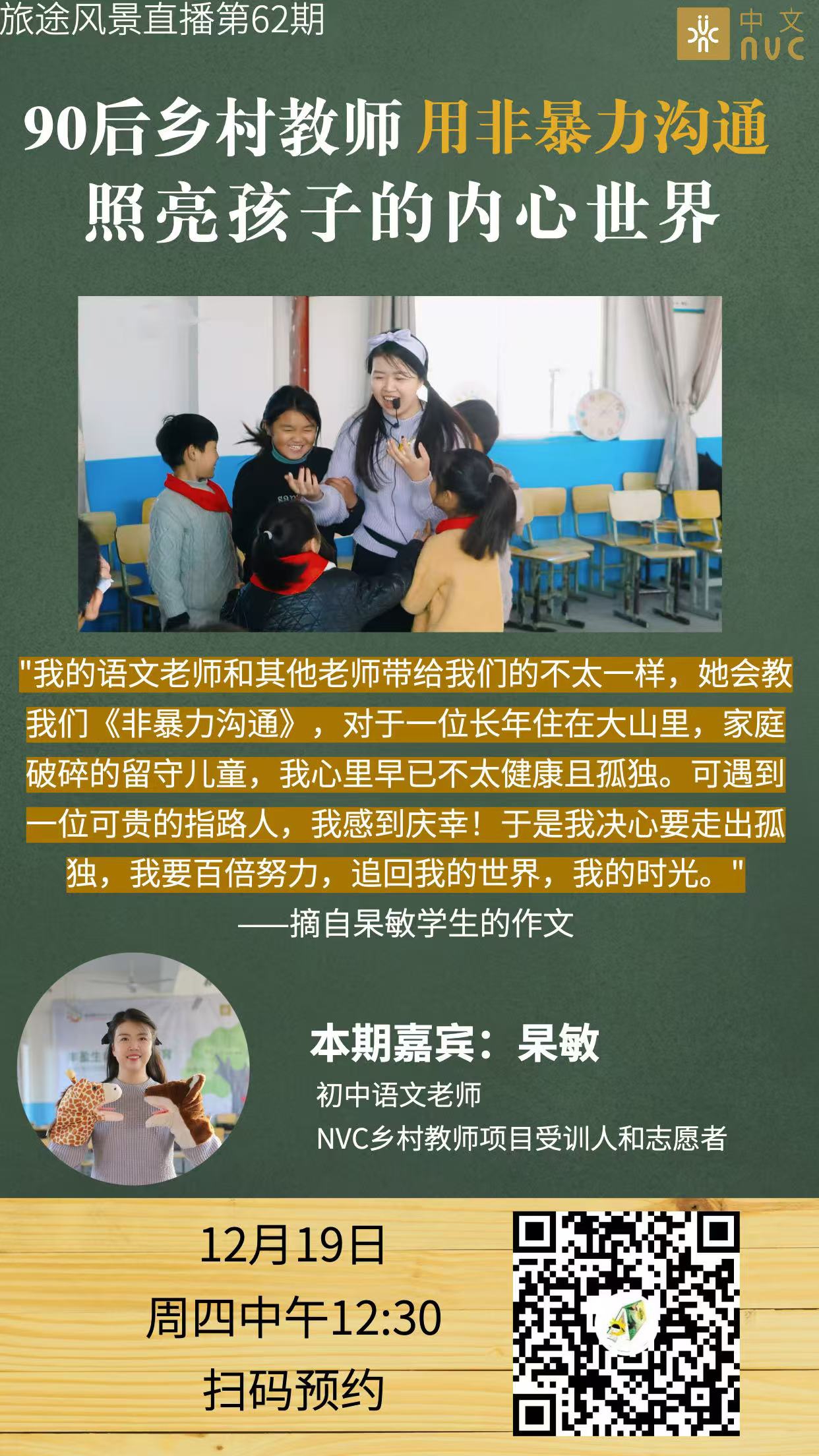 90后的乡村教师杲敏在NVC的学习及社群浸泡中获得力量后,并没有独自享受这份成长,而是开始影响身边的每一个人。