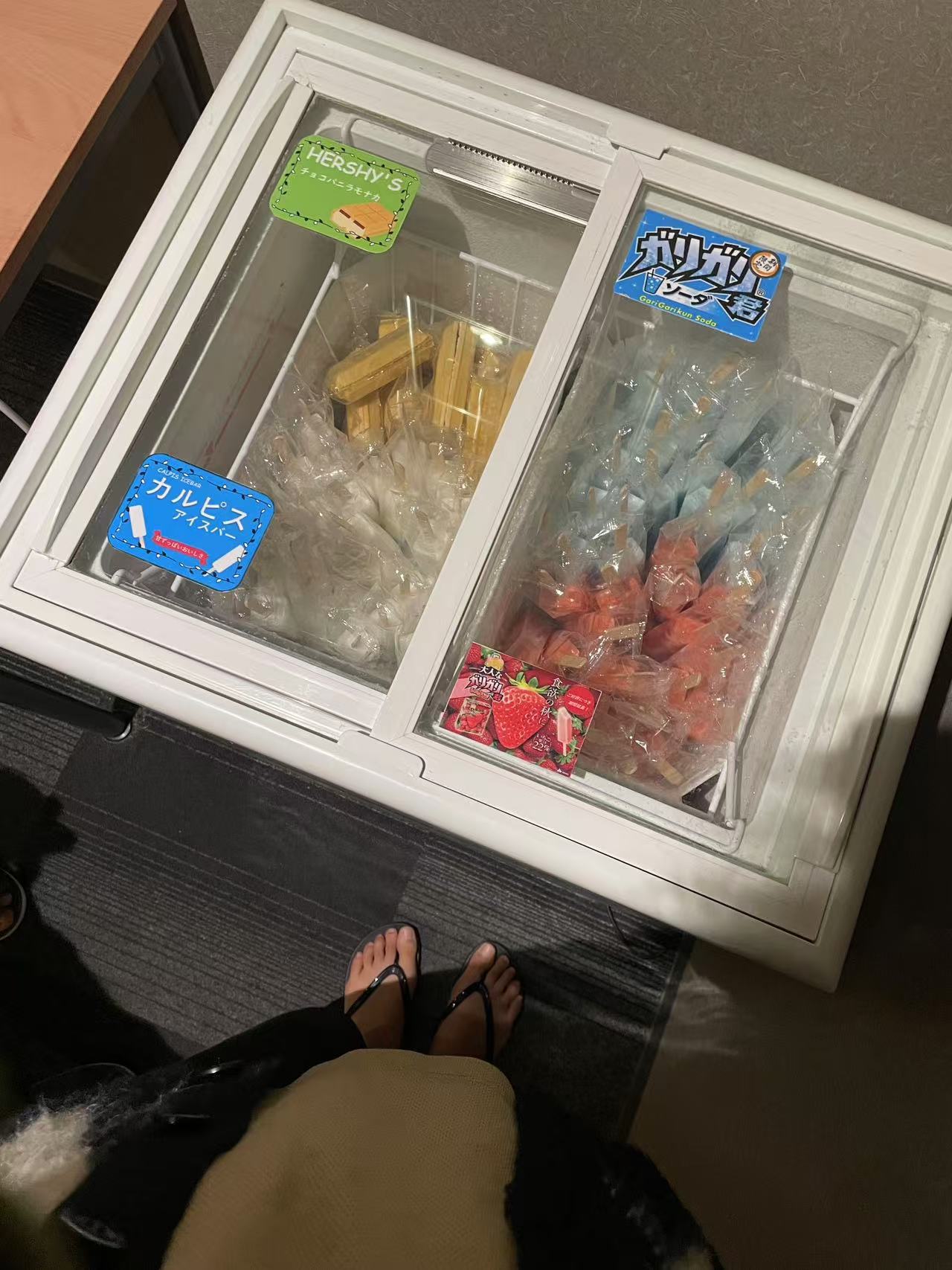 温泉出口处的雪糕冰柜,免费