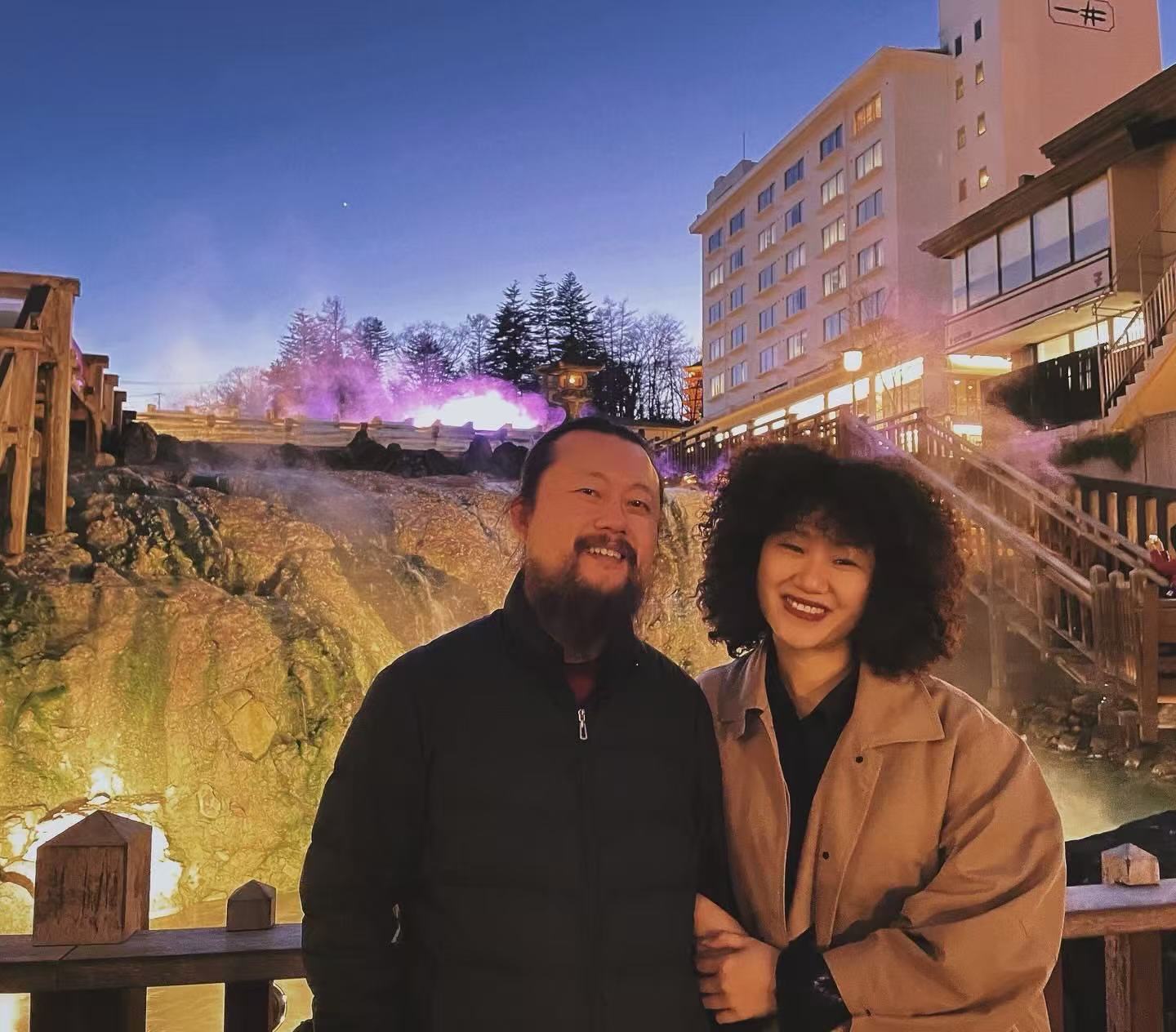 汤畑温泉夜景宛如仙境,特别适合情侣、家庭旅行