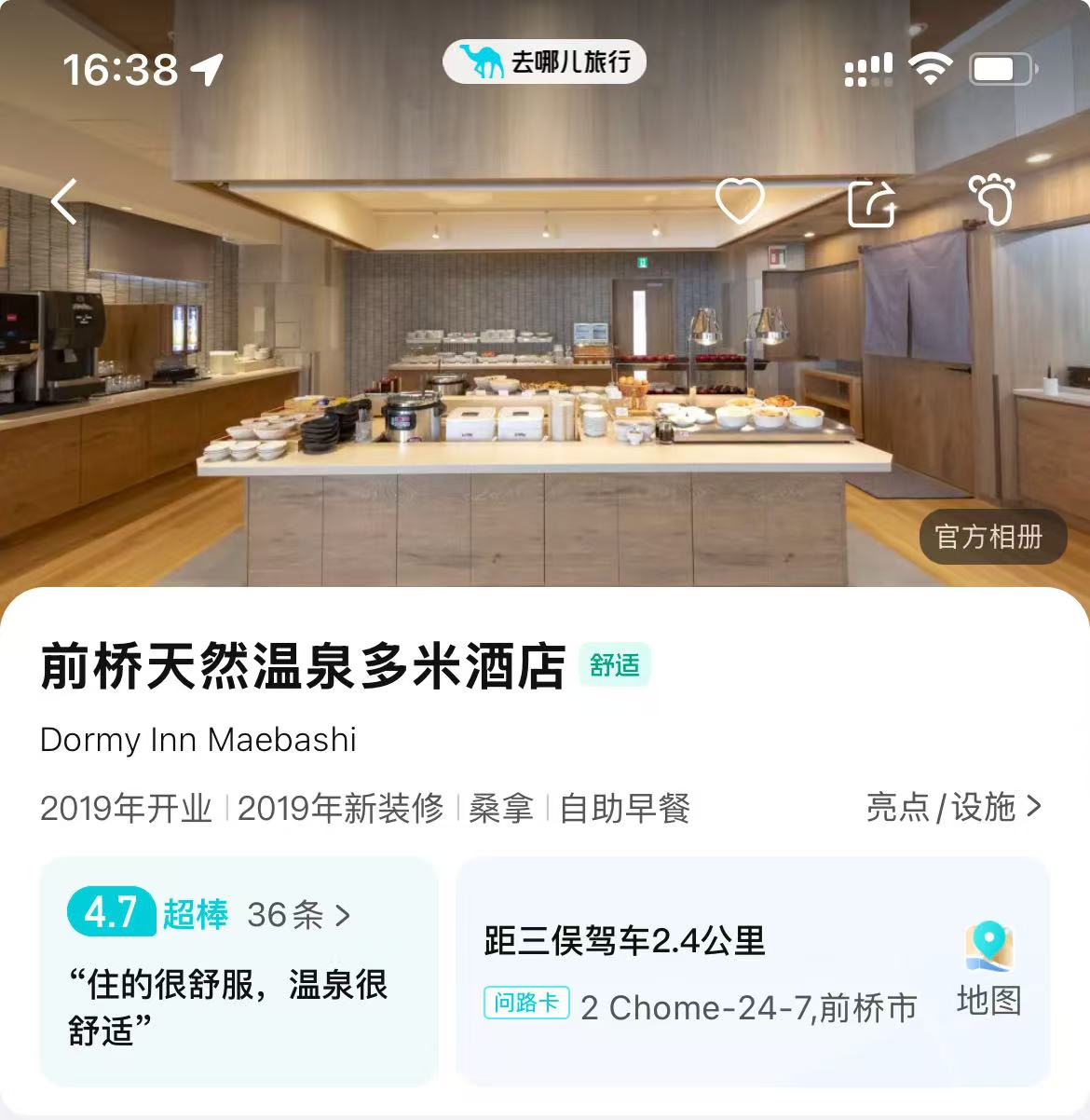 - 旅之棲浅草酒店>步行>浅草站>乘坐电车>上野站>换乘新干线>高崎站>换乘电车两毛线>前桥站—¥4500.00/人(含税,Apple app“换乘案内”可用)