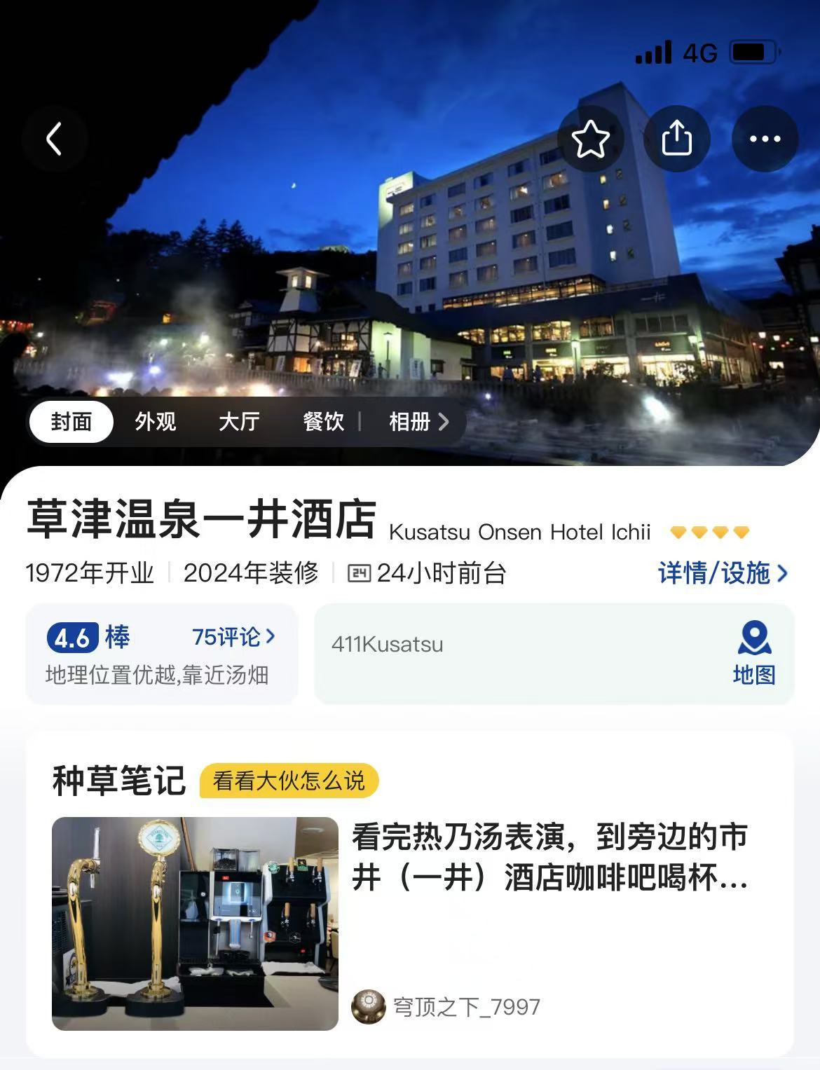- 草津温泉一井酒店Kusatsu Onsen Hotel Ichii—¥18800.00/人(两人入住双床标准间,免费汤畑交通站接送,含入住当日晚餐,入住次日早餐,含温泉费,含税)
