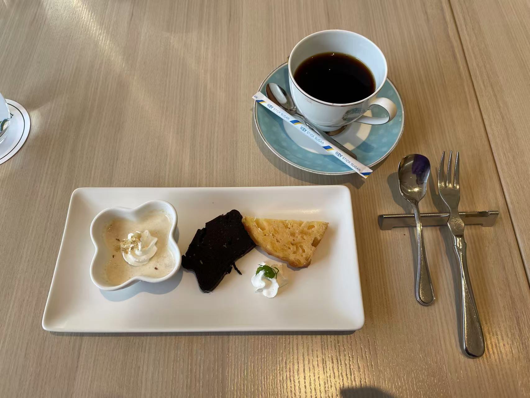 甜品盘:果仁奶冻、两款蛋糕切片配奶油