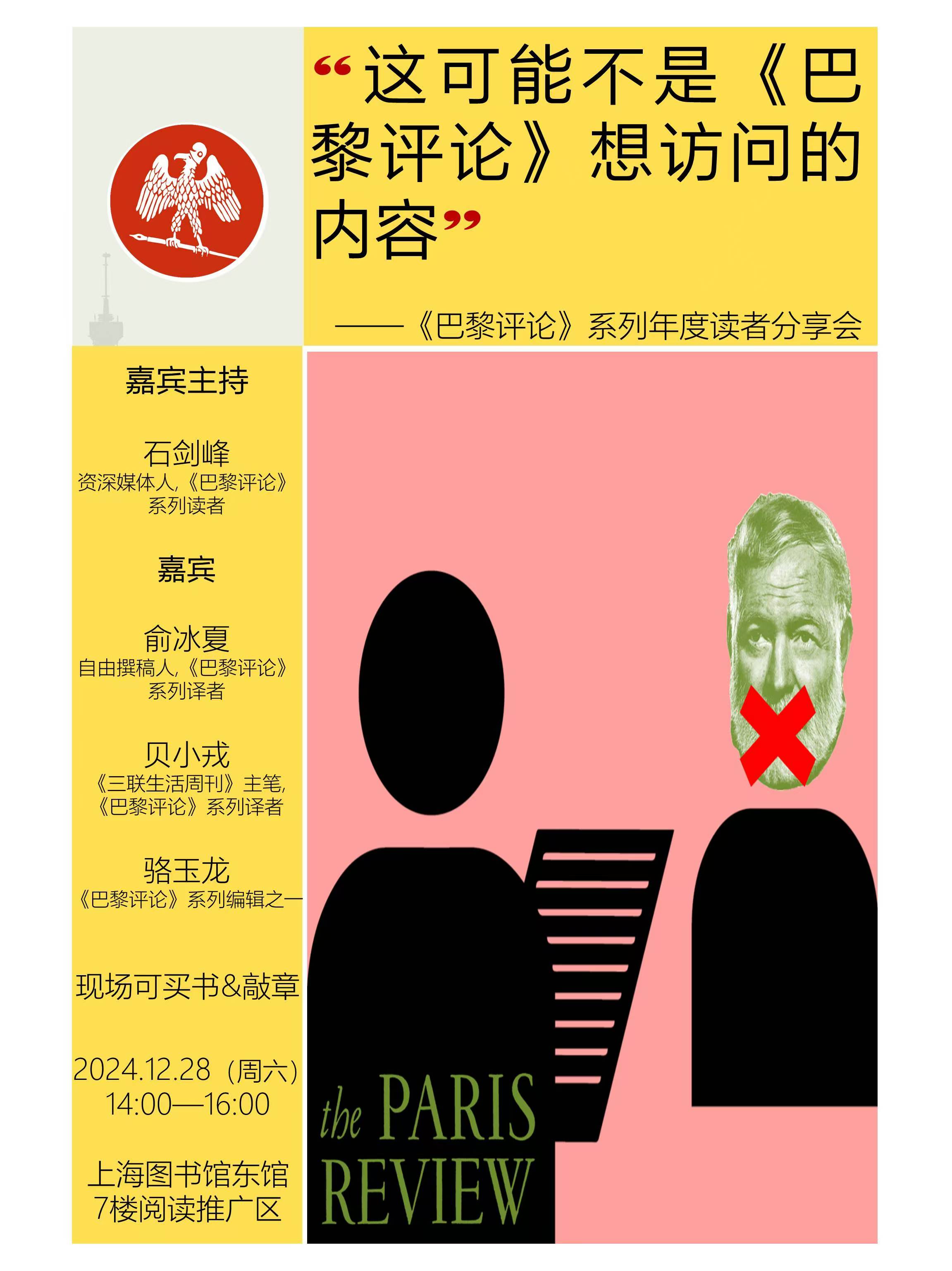 00:50 广告时间:12月28日下午2点,两位主播以及我们的朋友贝小戎将在上海图书馆东馆参加一个线下读书活动——《巴黎评论》系列年度读者分享会,欢迎大家来玩。
