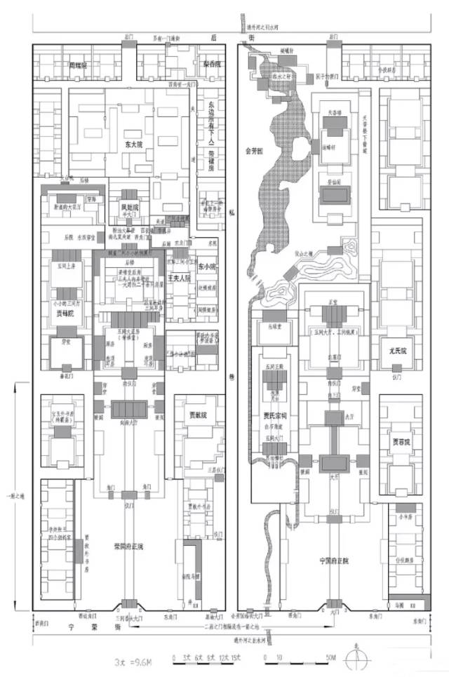 大观园修建前的宁荣二府和其原有园林:会芳园