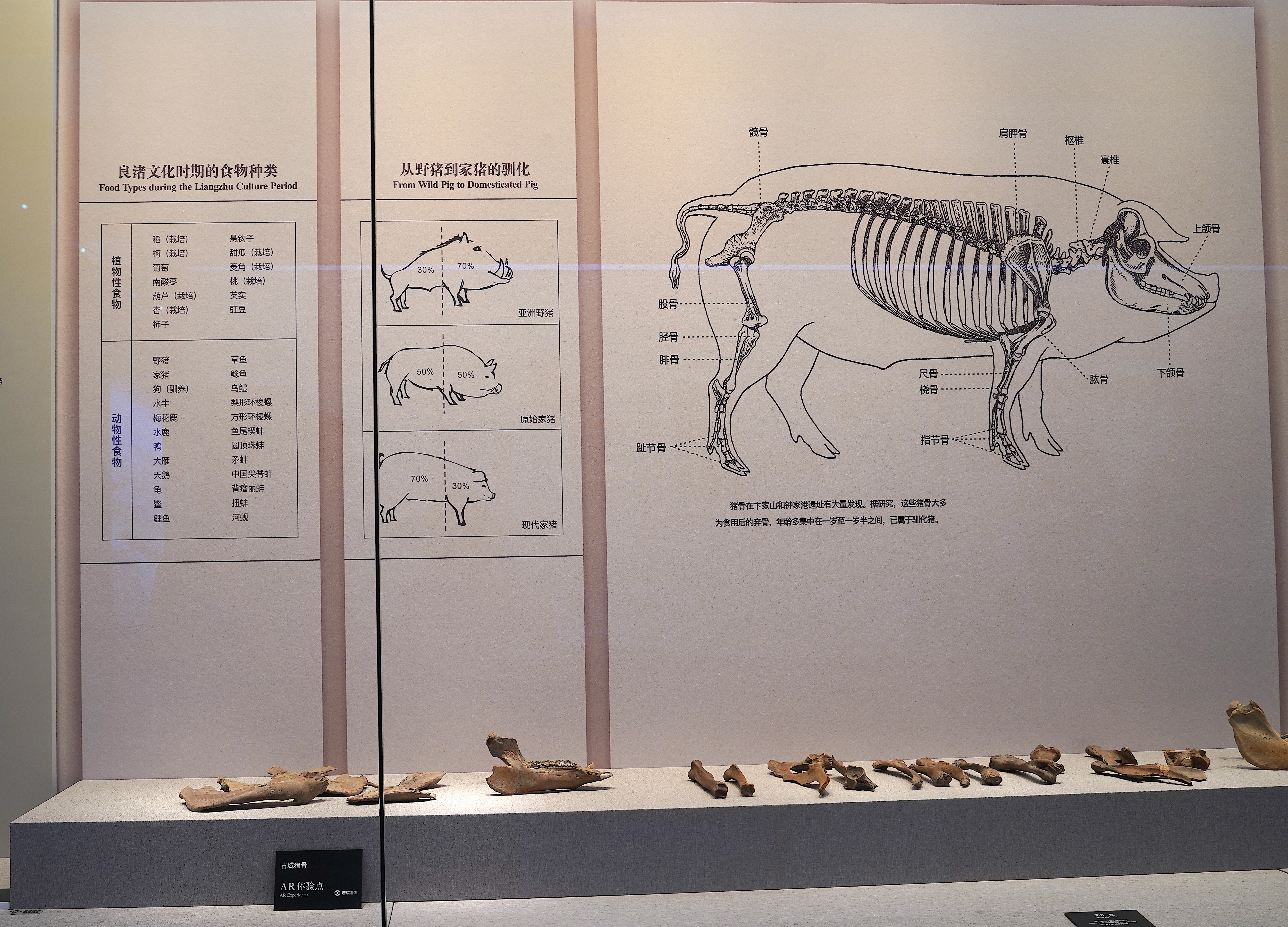博物院中关于“野猪->家猪”的图示展板及相关猪骨 @Zoe