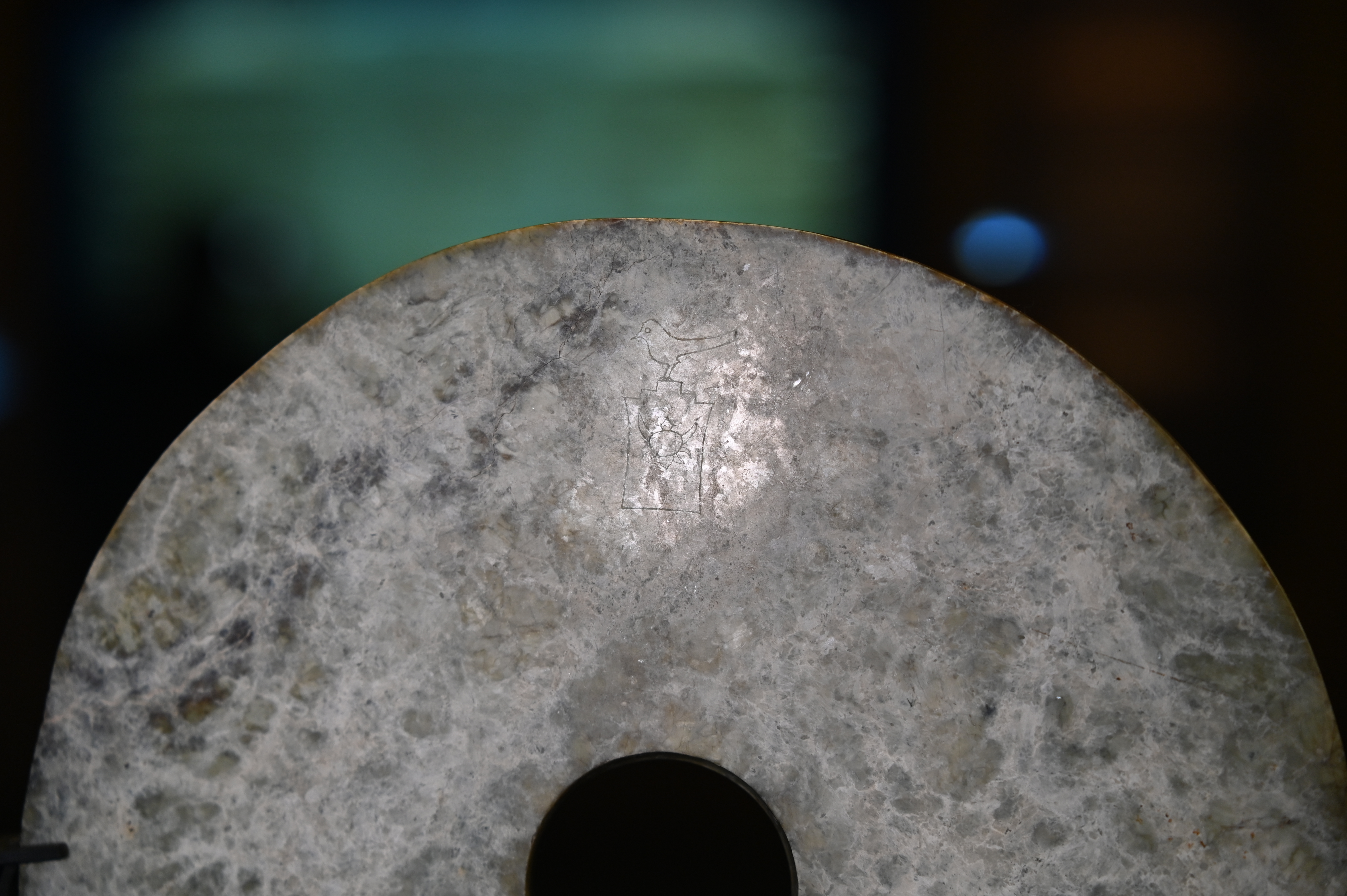 新石器时代,刻鸟立高台符玉璧,征集,良渚博物院藏-正面 & 背面 @场长