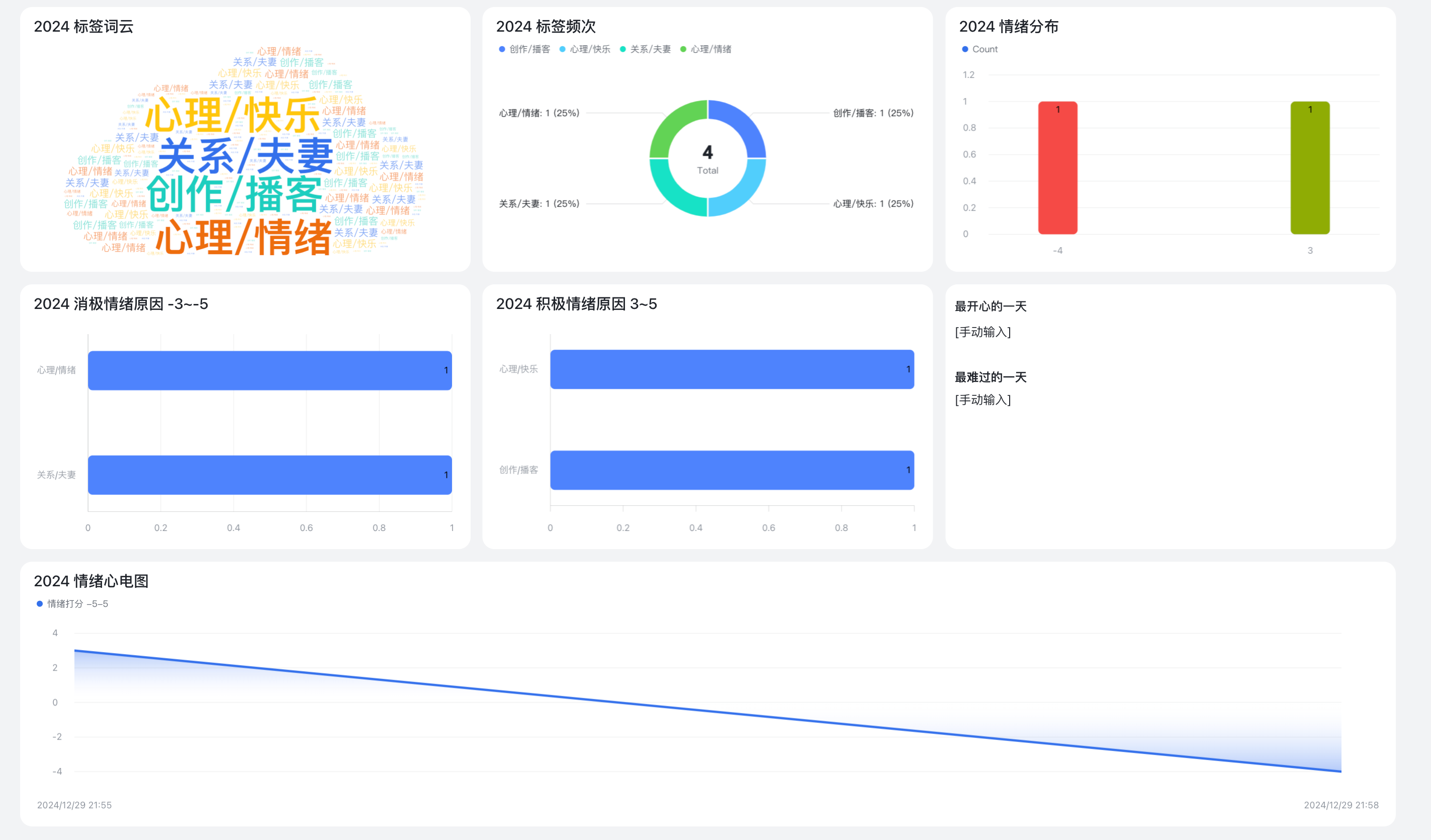 我们将围绕快乐打分、不快乐与快乐的原因展开讨论,分享这一年最触动人心的瞬间和关键的人生大事。与此同时,我们也会聊聊 2024 年的情绪波动图,复盘副业探索与成长点滴,并展望 2025 年的新目标。