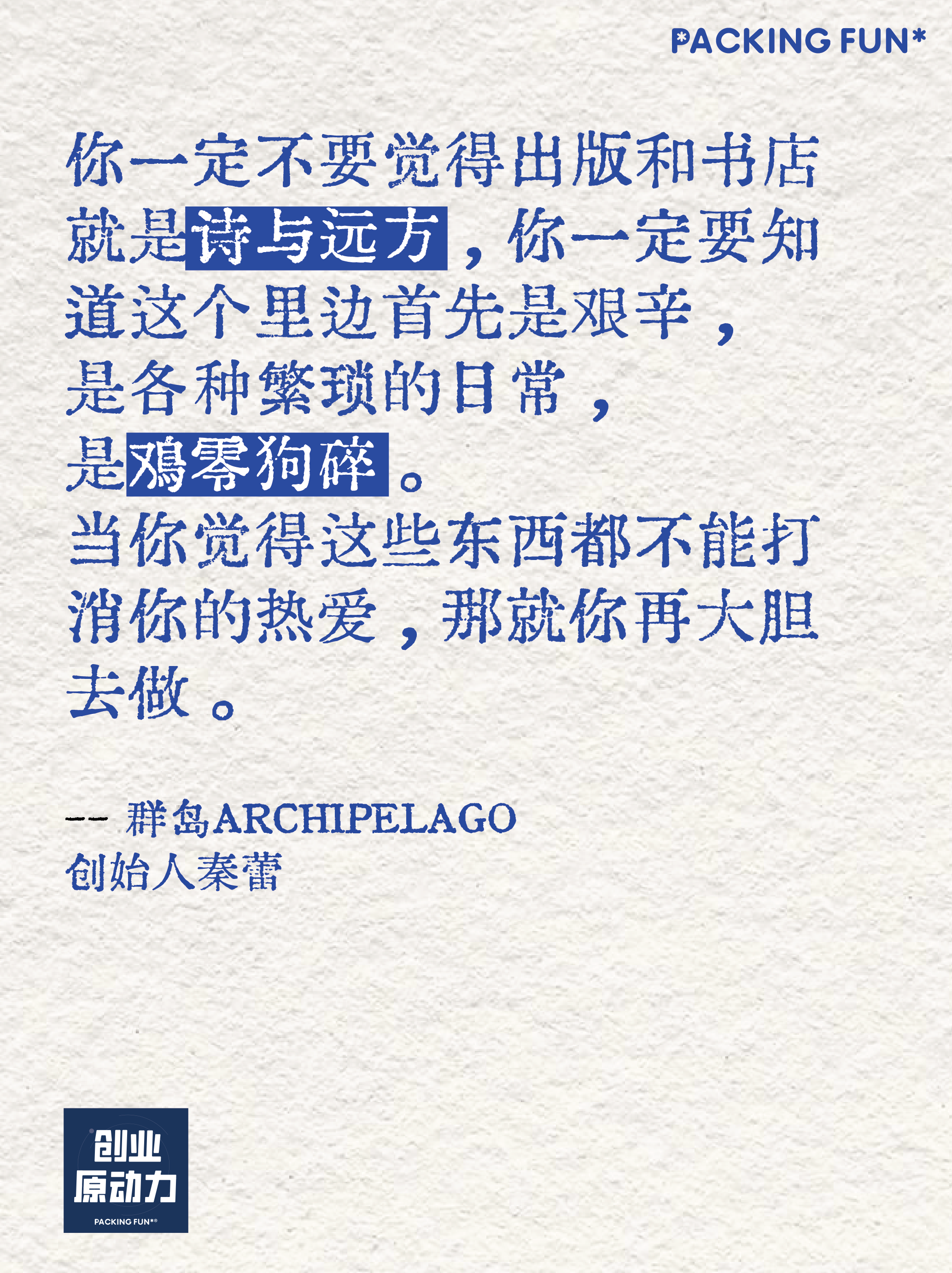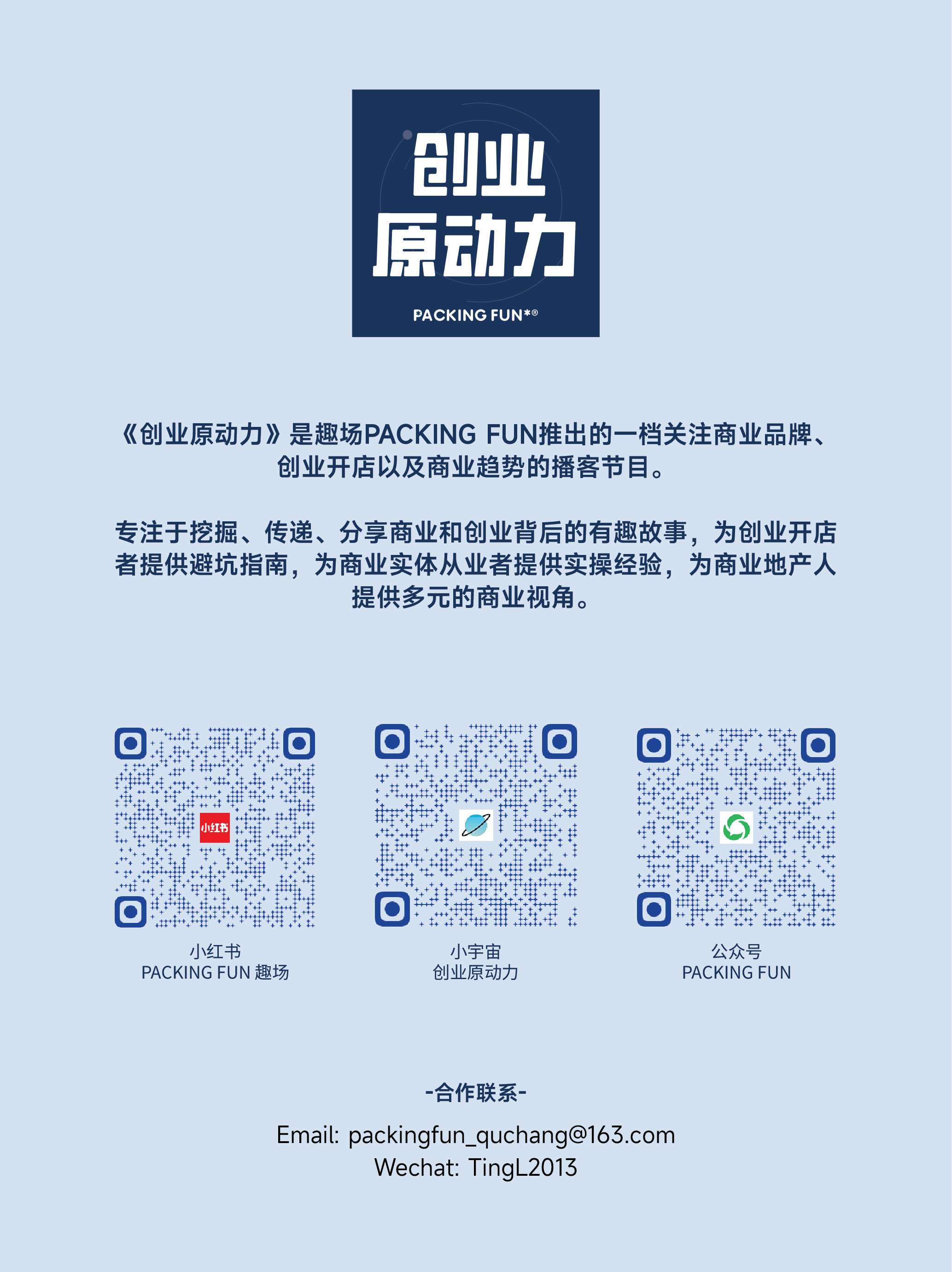《创业原动力》是趣场PACKING FUN推出的一档关注商业品牌、创业开店以及商业趋势的播客节目。