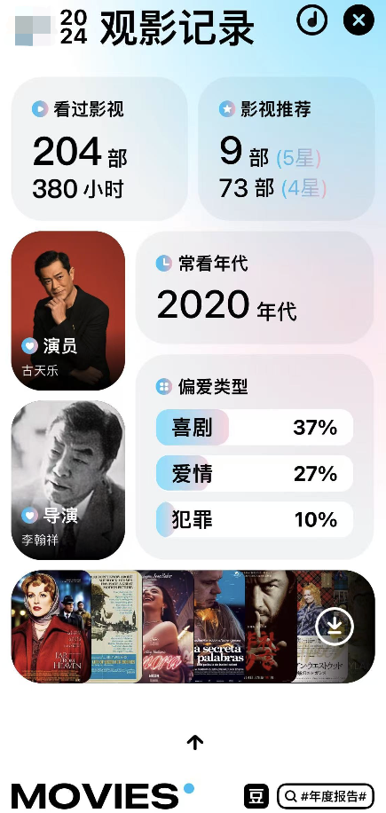 你一年嗦了几碗粉、喝了几杯咖啡、走了几公里的路、听了几个小时的博客、哪个歌手的歌陪了你最久、看了几场电影、在各种细分品类花了精确到几分的钱、甚至你在多邻国背了多少单词,一切都被总结了。