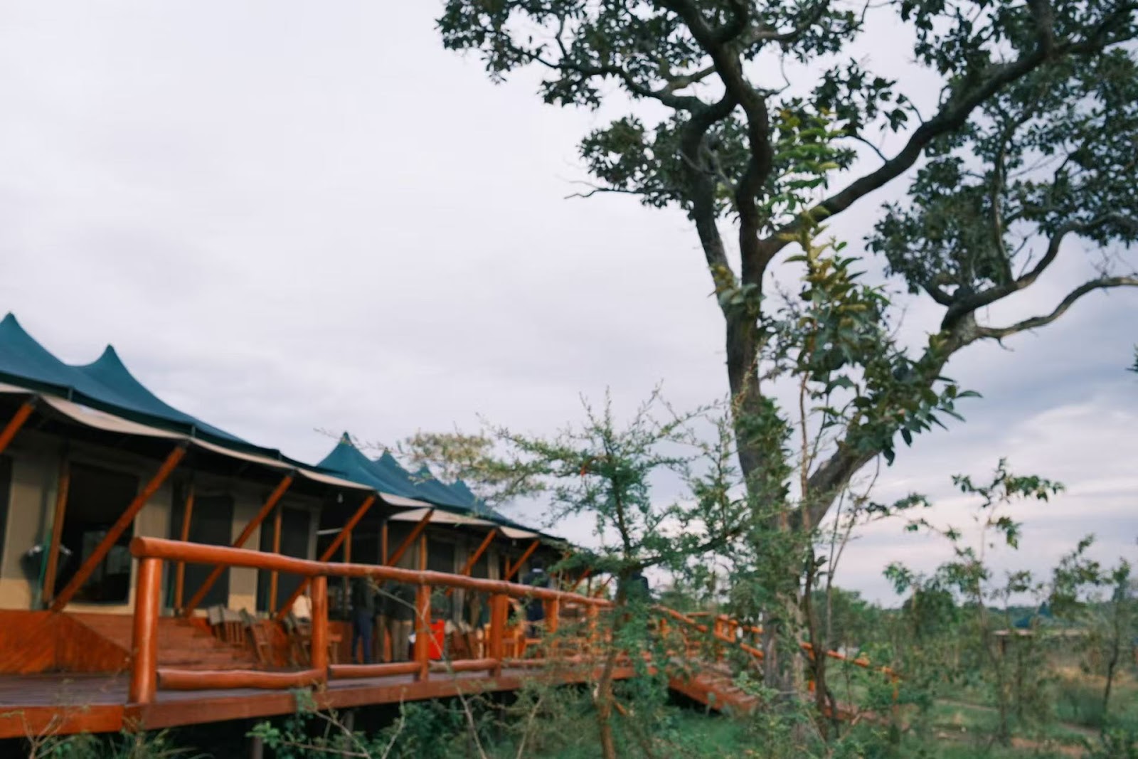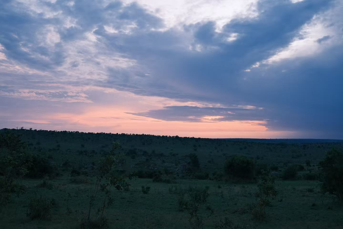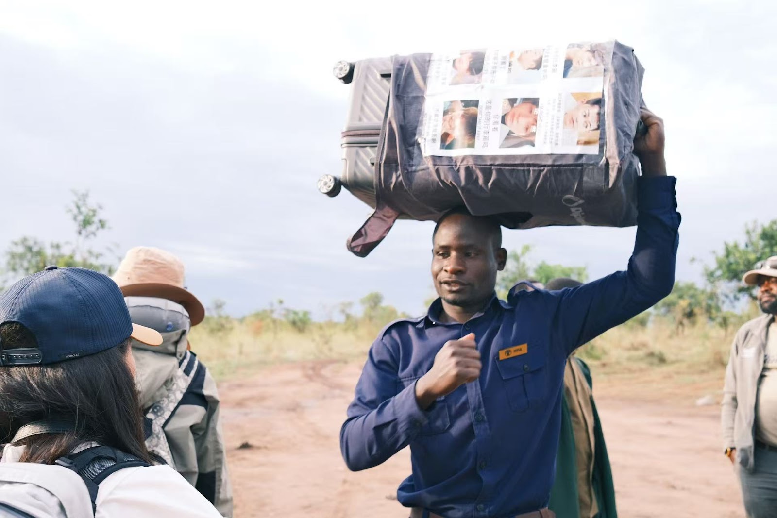 我们在非洲住的帐篷 欢迎仪式 独特的头顶行李 和 绝美的夕阳