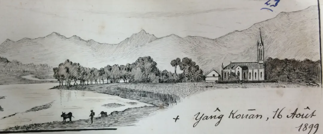 👇在巴黎外方传教会的档案中还保存了杜家庄教堂的照片,一张是1900年前后的杜家庄教堂,一张是1935年左右。1900年的教堂在义和团运动中被损毁了,后来重建了一个更加宏大的教堂。