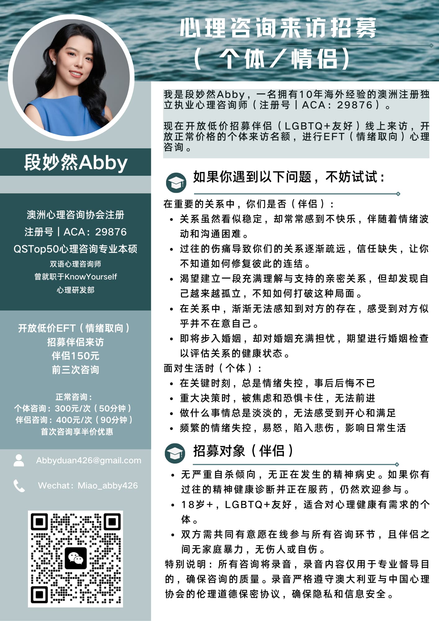 嘉宾:base在上海的伴侣咨询师Miaoran(Abby)