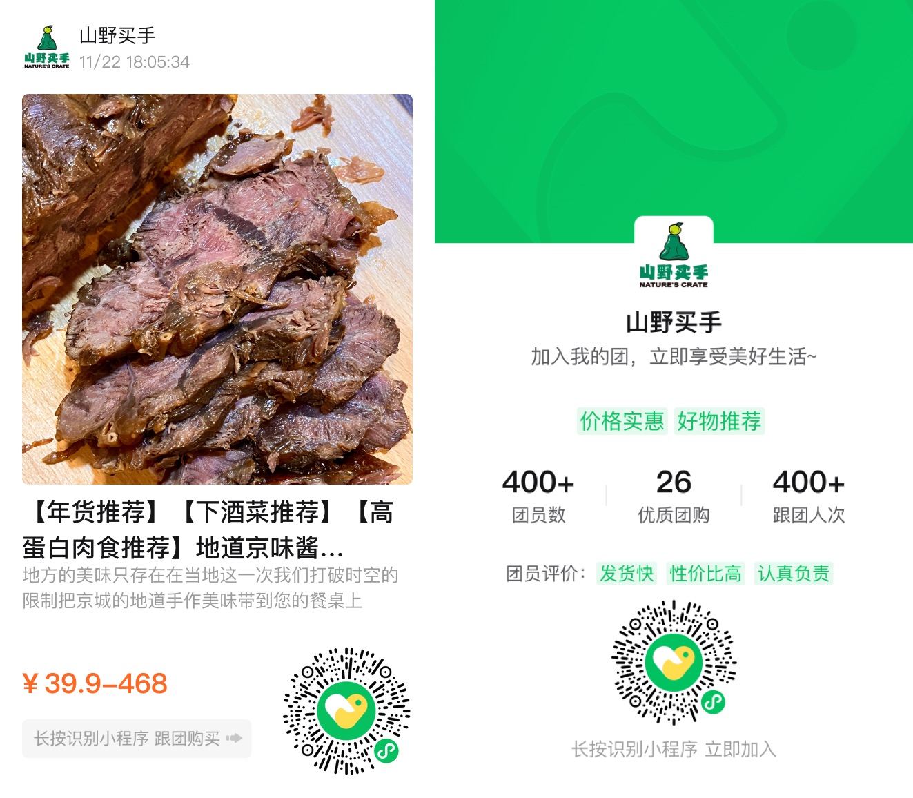 山野买手年货季正在进行中,如果您想要选择带有老北京风味的礼盒,可以点击下方小程序购买傅记酱肉👇