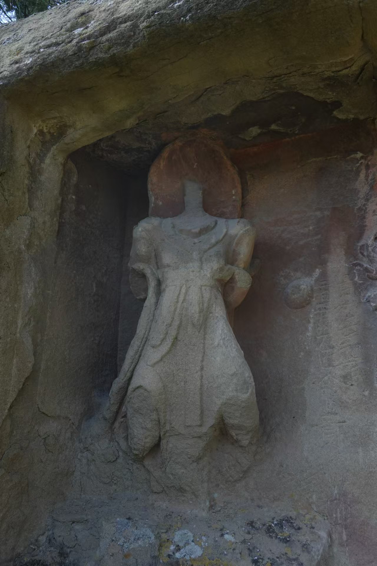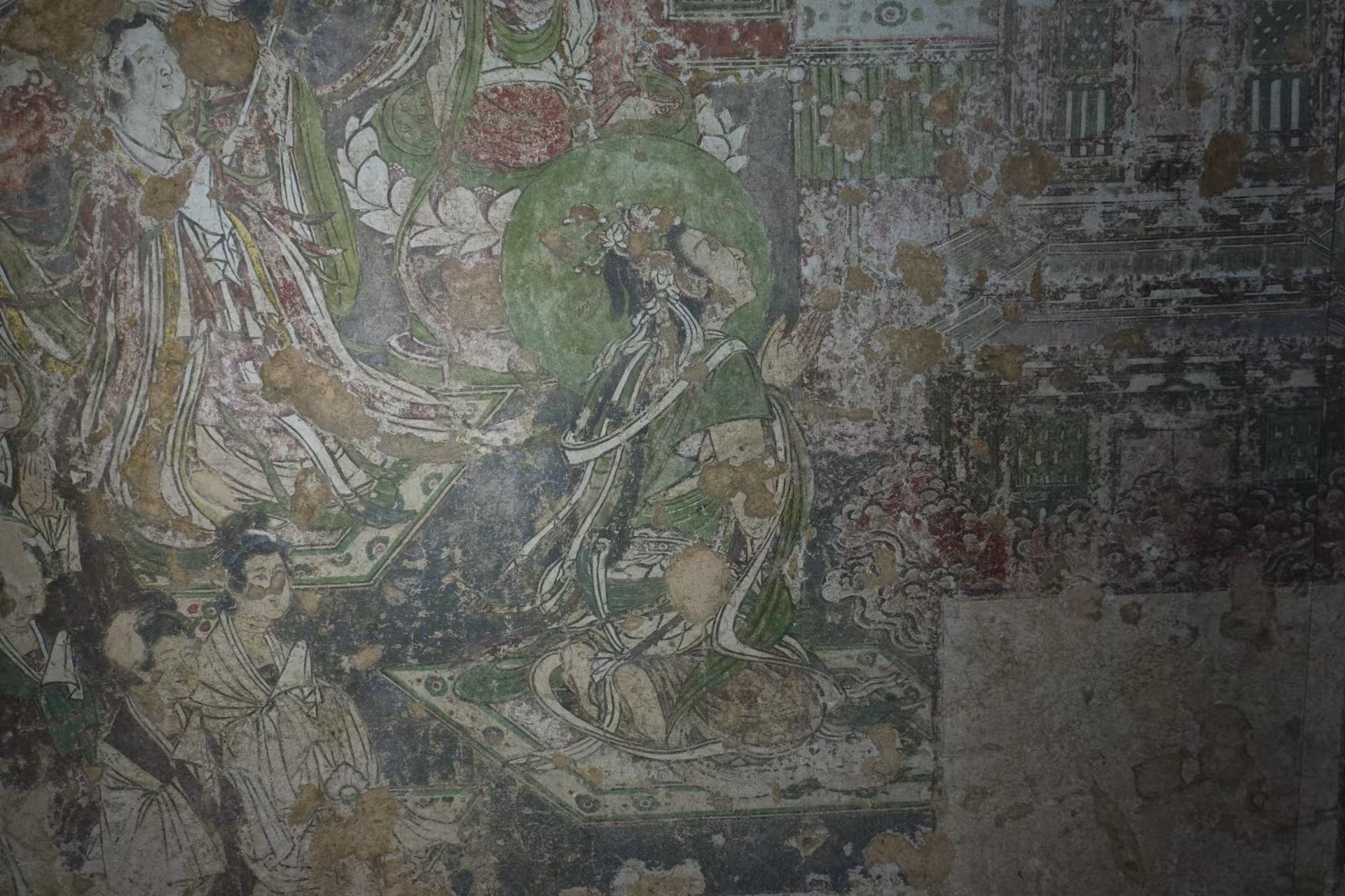 09:12 羊头山石窟内的供养人壁画保存状态。