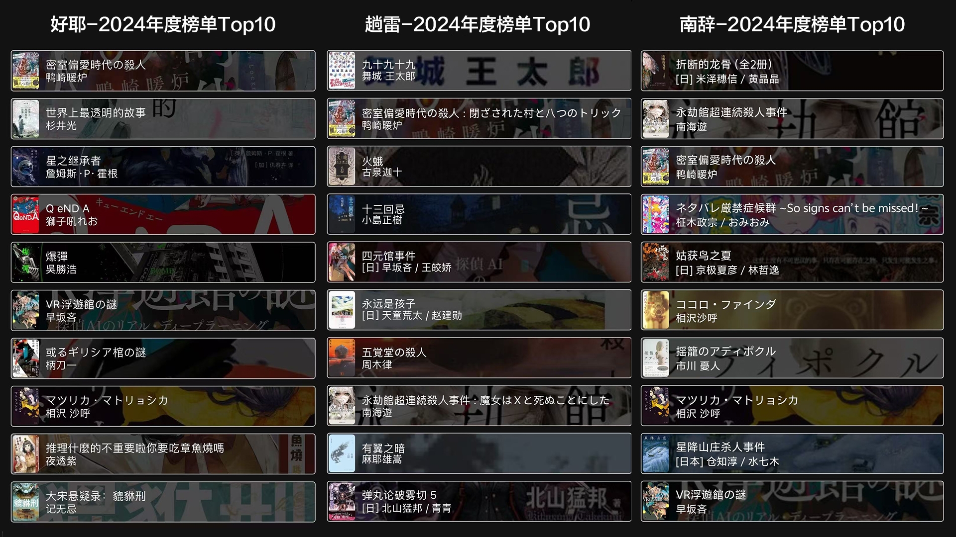 本期嘉宾:Pluto 好耶 南辞时间轴:00:00-38:30 推理相关事件杂谈38:30-44:45 个人榜单速过44:45-1:12:40 好耶(绿豹)榜单1:12:40-1:45:20 Pluto(Emu)榜单1:45:20-2:00:00 南辞榜单2:00:00-2:16:00密室偏爱时代的杀人2:16:00—— 结尾