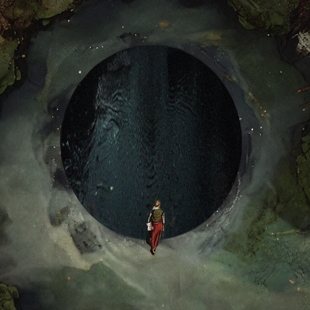 她靠近了井口,潮湿的气息扑面而来,混着腐败的气味。突然,她听见了一滴水从井壁上滑落的声音,“啪”地击中了某种表面。这微弱的声音在空旷的山谷中扩散,像一道无形的回响,直击她的耳膜。