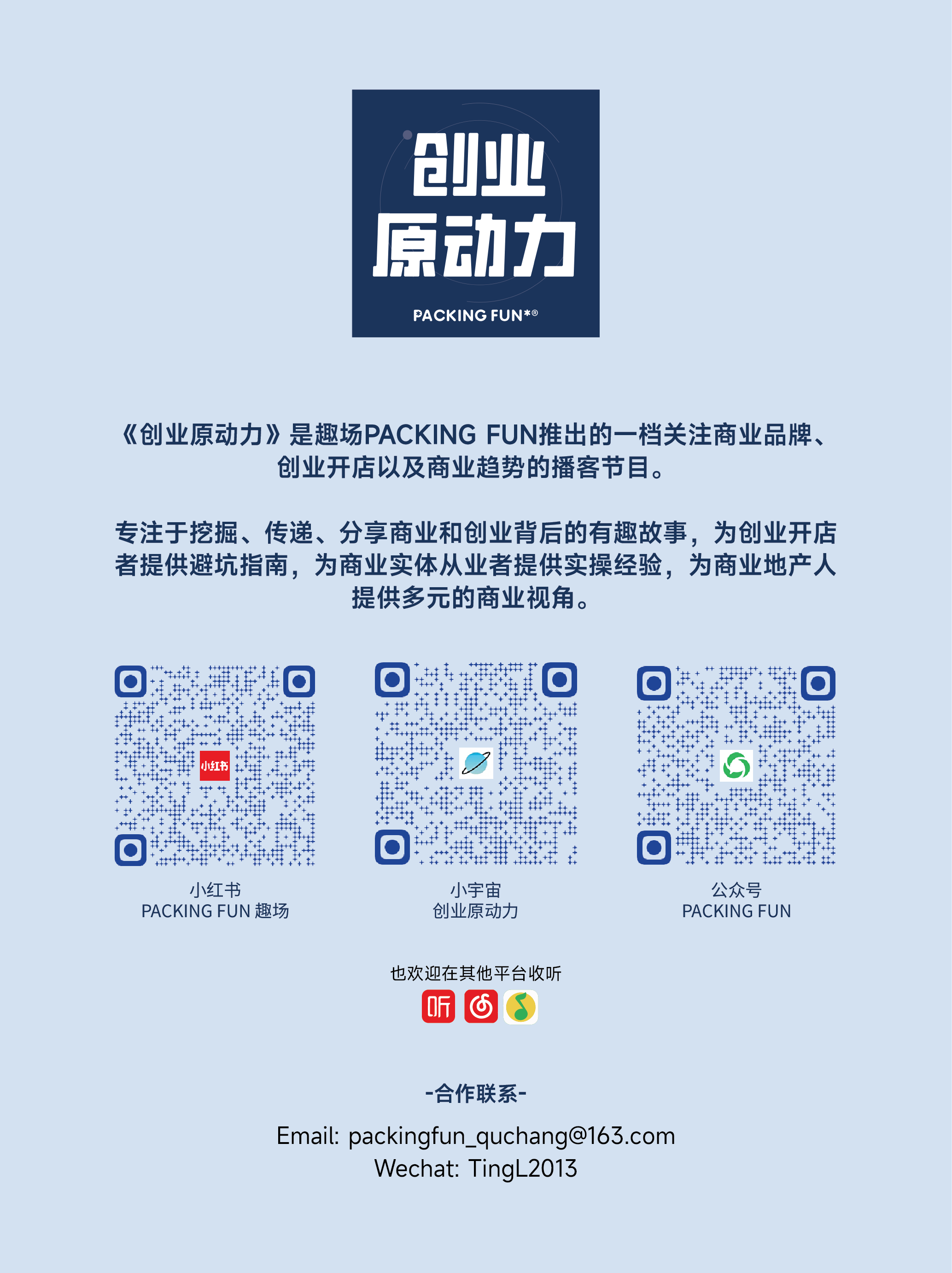 《创业原动力》是趣场PACKING FUN推出的一档关注商业品牌、创业开店以及商业趋势的播客节目。