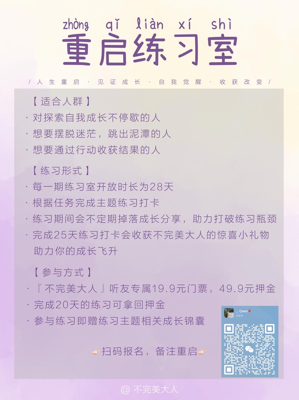 不完美大人每个月会不定期更新一期节目,2025年我们尽量月更2次哈哈哈哈,欢迎大家关注、订阅,督促;如果你们有什么想法和话题可以在评论区跟我们分享,也可以添加我们的微信:bestqwen,备注:重启,加入听友群或重启练习室。祝大家新春快乐!