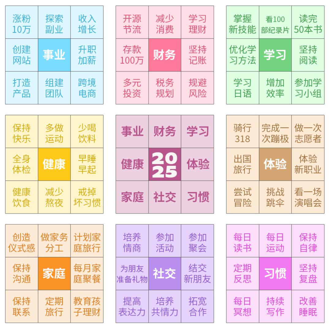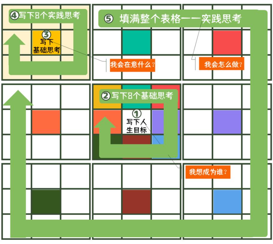 工具💡:“生命之轮”;“熊谷正寿的梦想·人生金字塔”;“愿景板”;“曼陀罗九宫格”