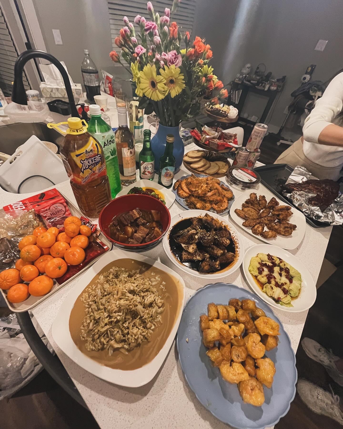 - 湿巾出国之后依然亲自做一桌年夜饭招待朋友