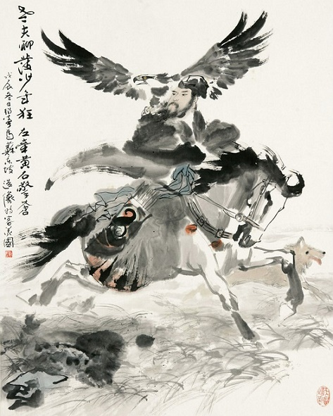 老夫聊发少年狂,左牵黄,右擎苍,锦帽貂裘,千骑卷平冈。