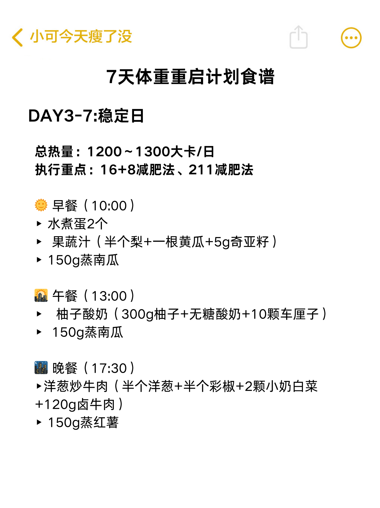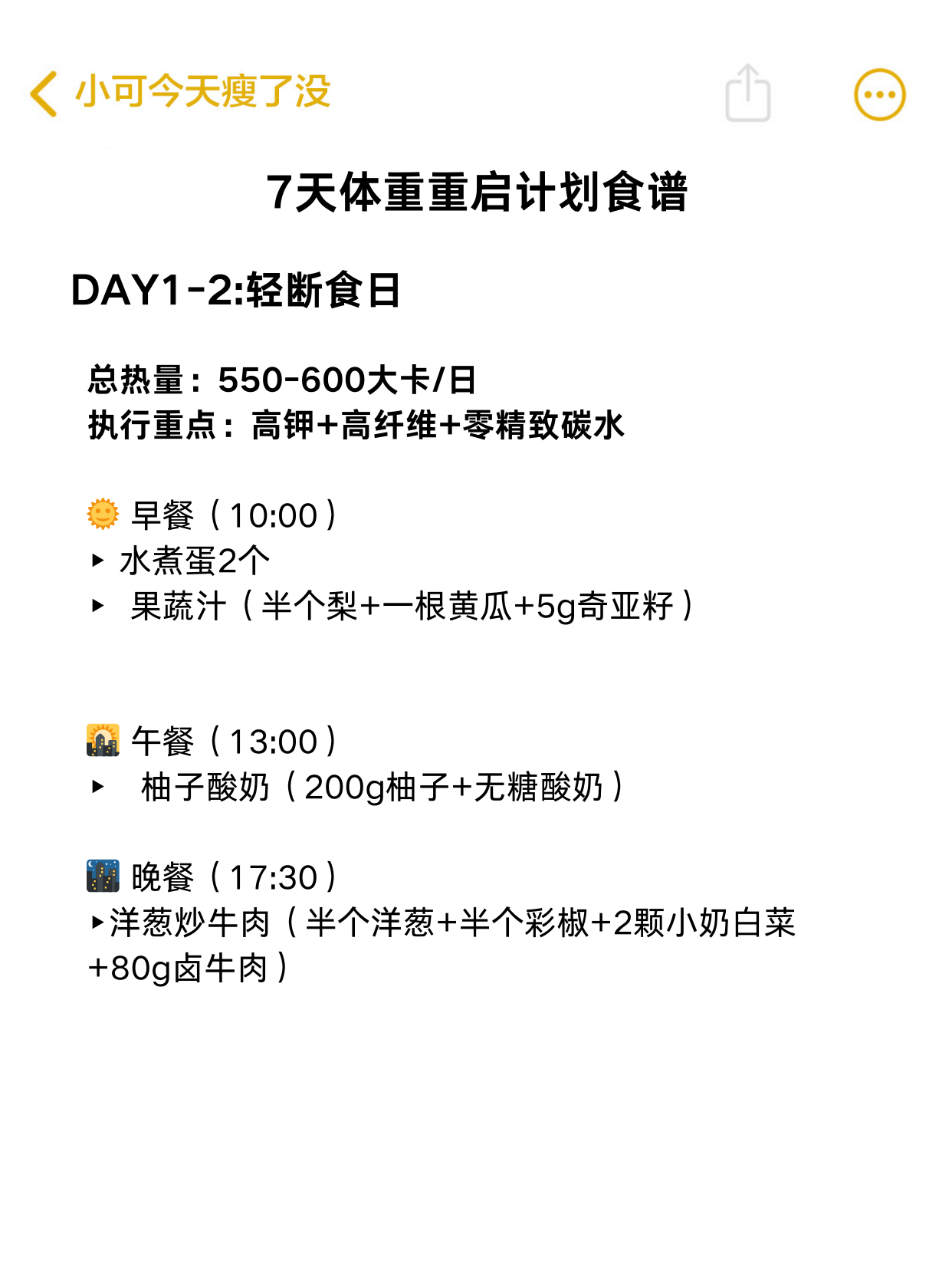 最后我会公开我的7天体重重启计划具体实施方法、食谱和注意事项(我过年胖了4斤,目前这套方案我已经实施了2天,2天体重降低了3斤,7天恢复体重,线条回归指日可待)