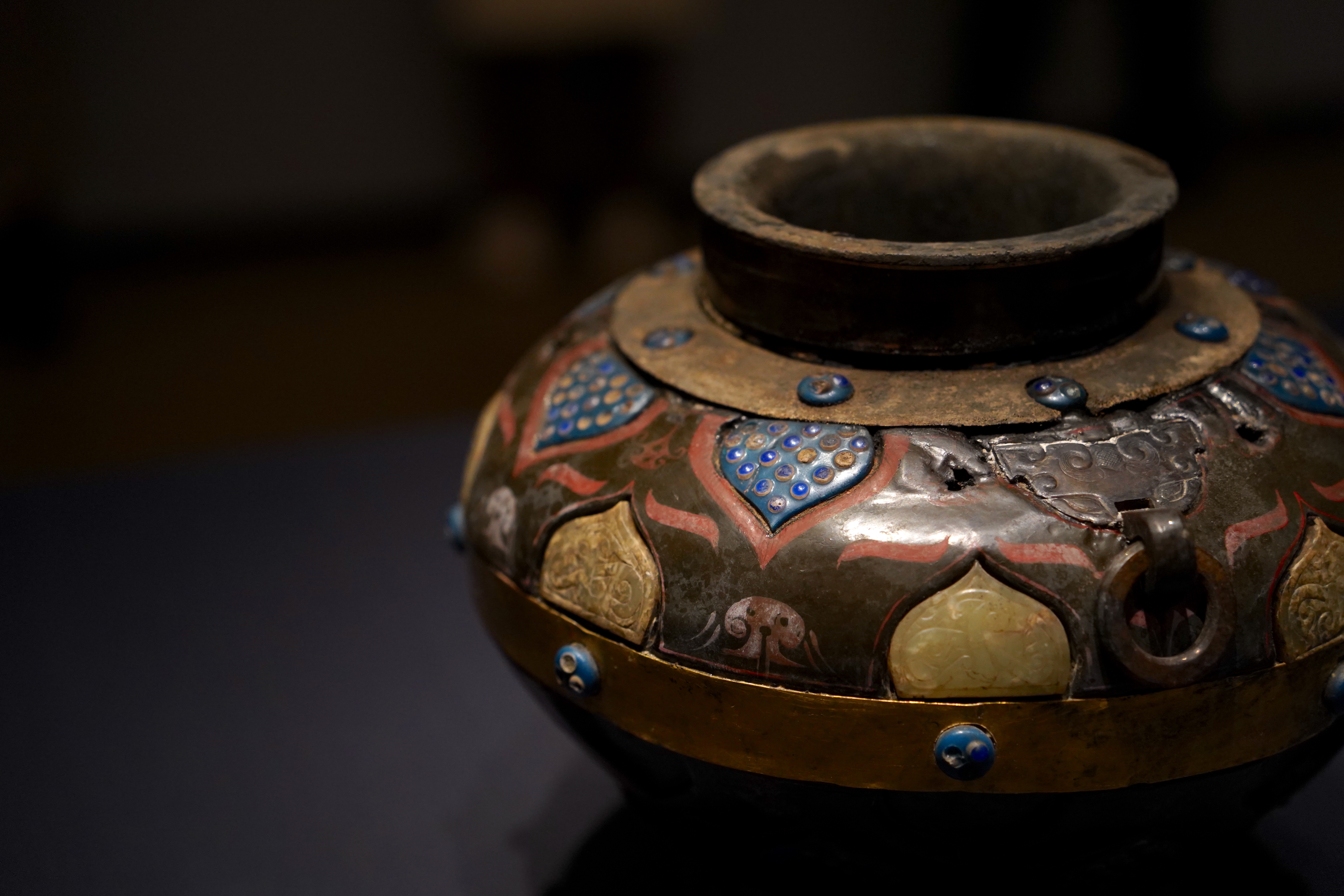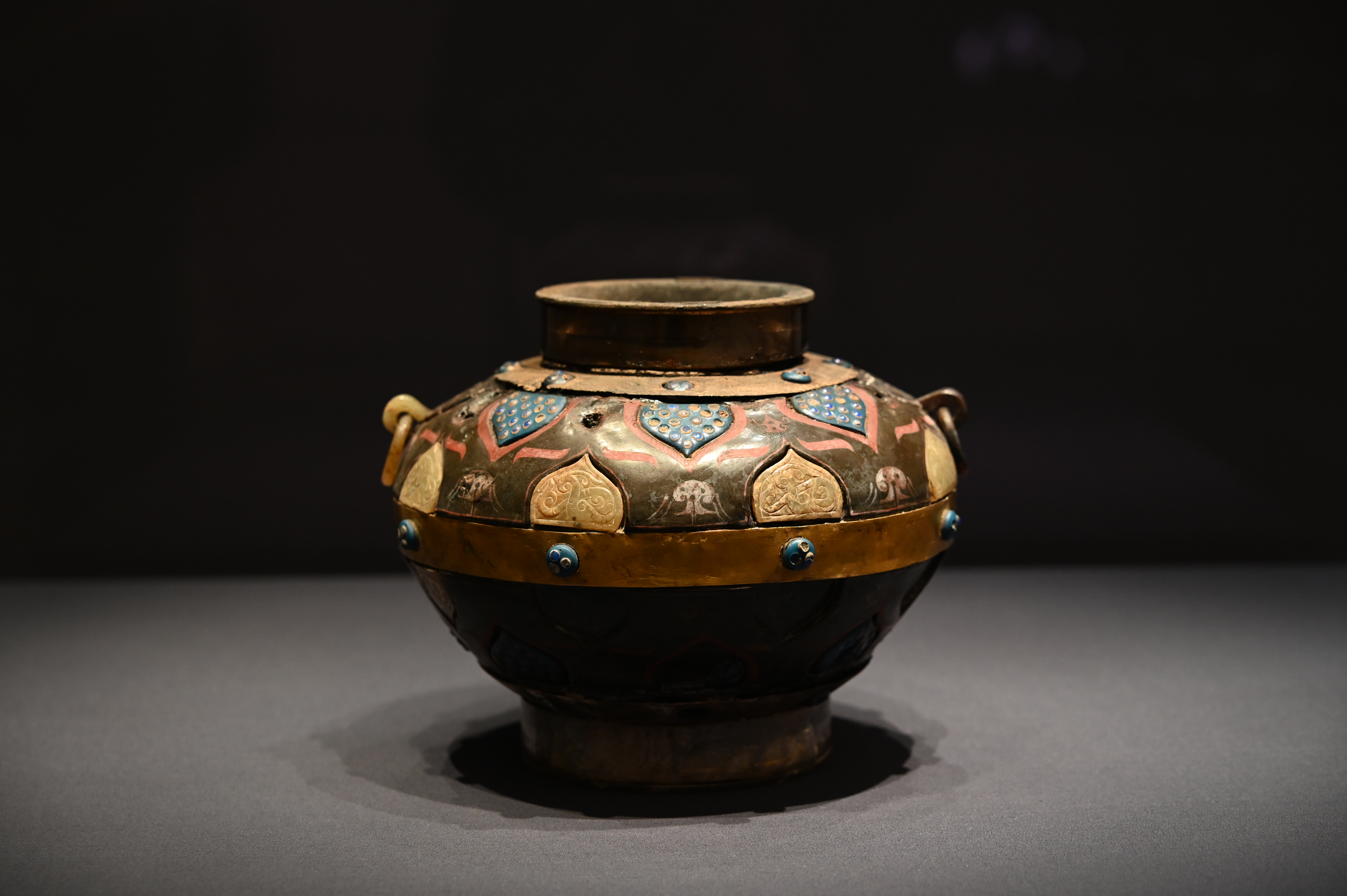 (宜子孙)战汉,嵌玉漆壶,巢湖北山头一号墓出土,巢湖市博物馆藏 @场长、邹姨