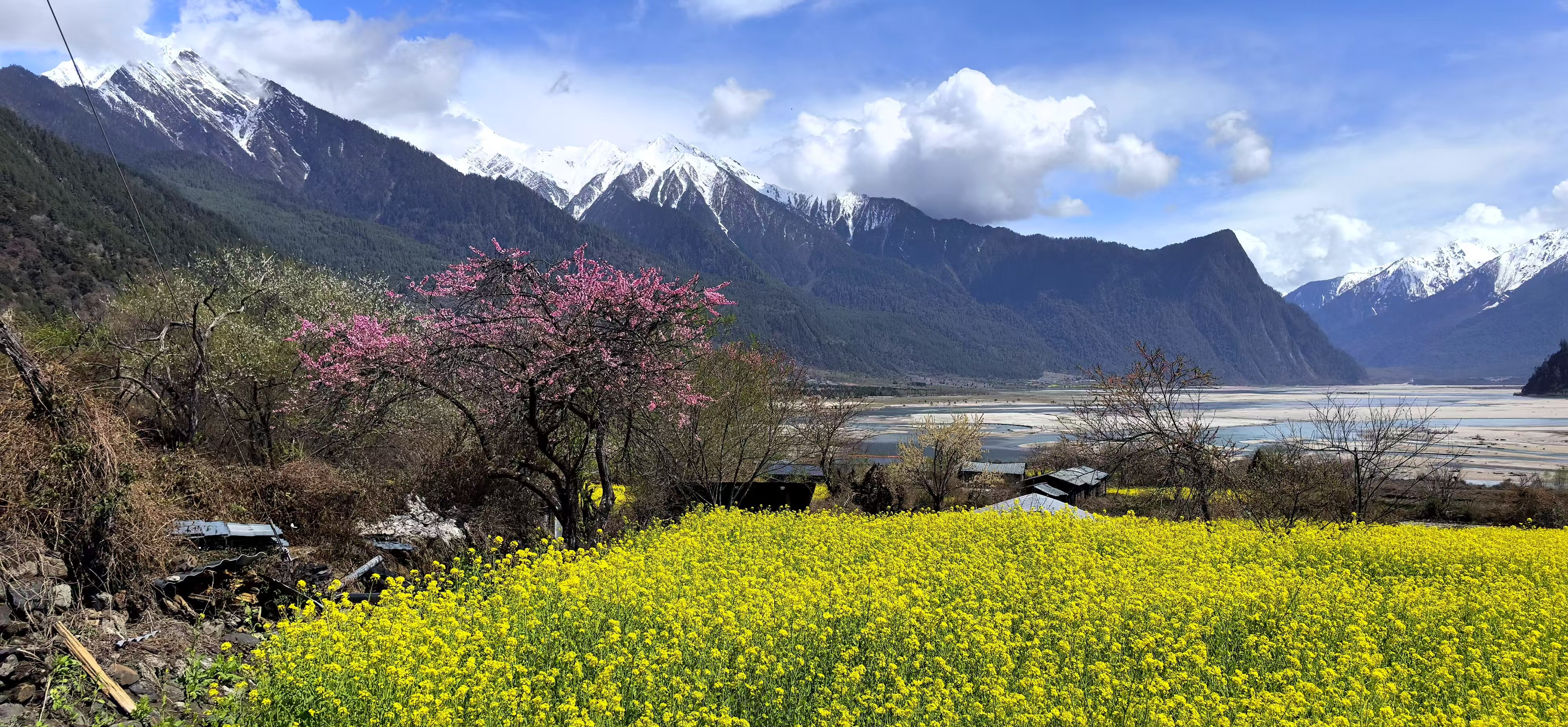 在这里,2月底三月初便能看到桃花和油菜花齐开的景象了。这里是西藏林芝花开最早的地方。
