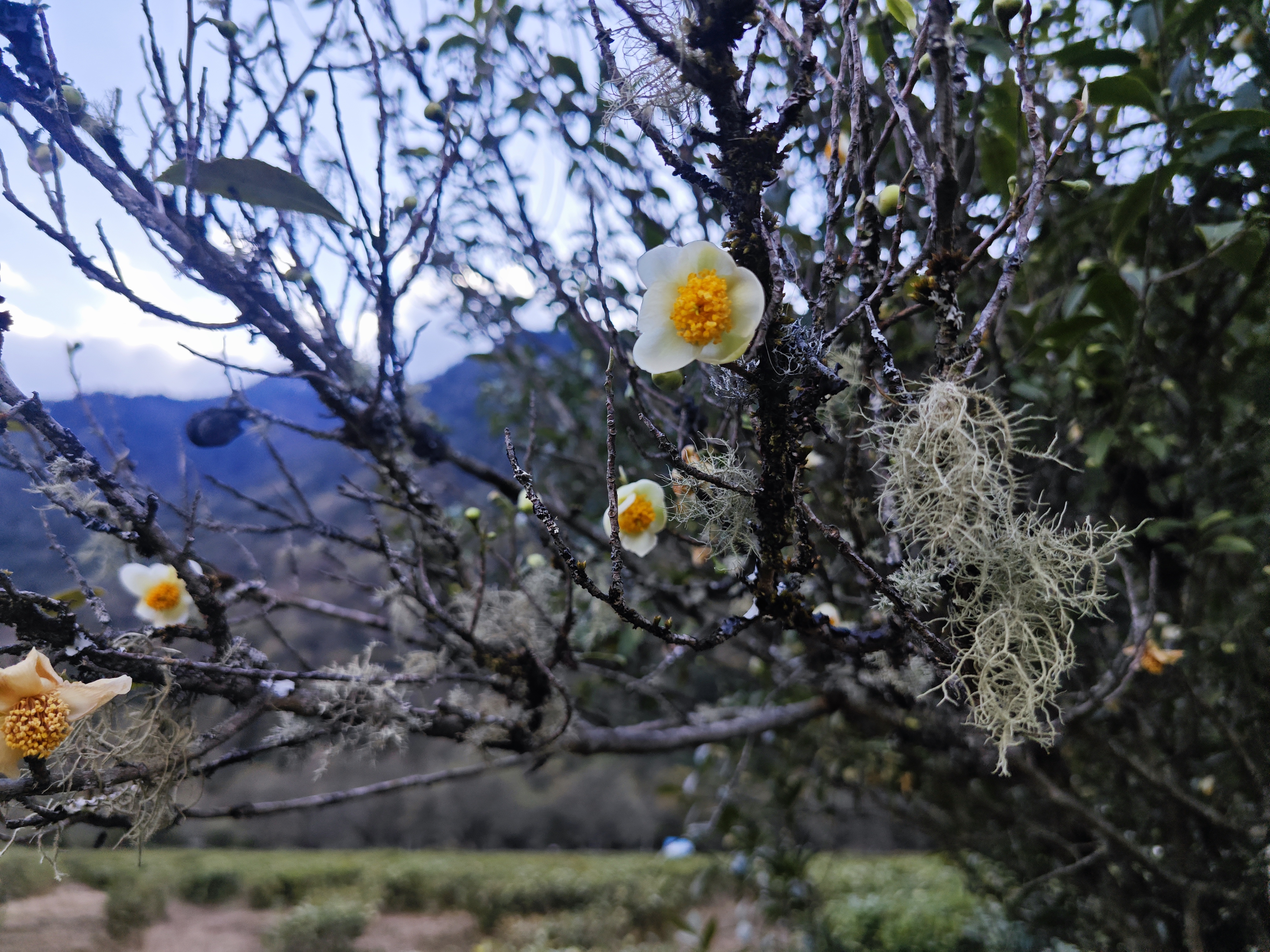 西藏第一块茶田里“将军茶”12月盛开的茶花: