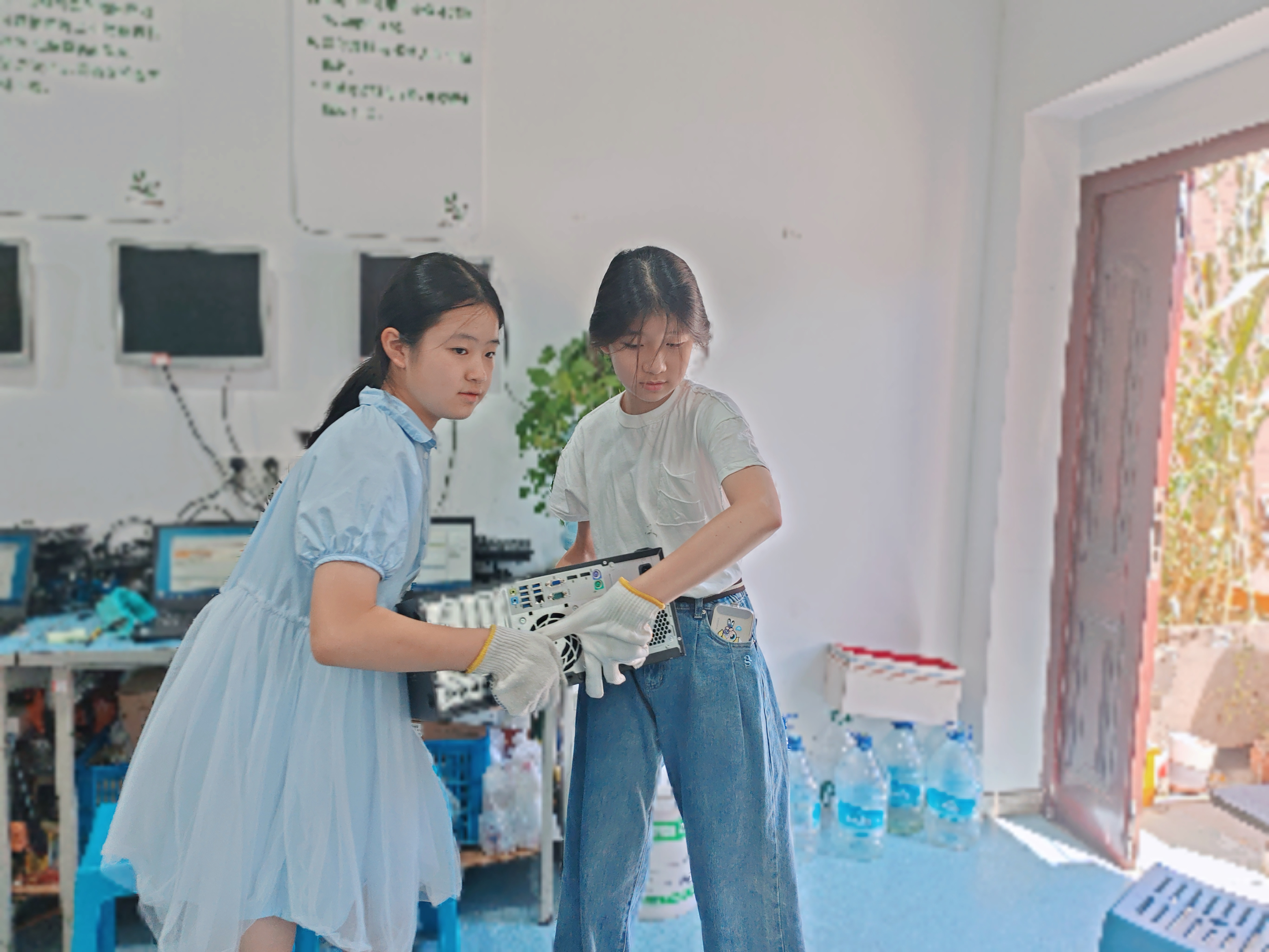 2024年夏天,我也是很偶然的一次机会走进了这个公益项目,因此认识Yoyo老师——上海众谷公益青年发展中心合作总监杨怡。在Yoyo老师和其他老师的带领下,一开始就是做一些简单的清洁电脑键盘和零配件拆卸的工作,在志愿服务的过程中听到了他们十多年来经历的小故事。我印象很深刻的就是Yoyo老师说他们有一间电脑教室是建立在西藏日喀则的一所学校,从教室的窗口就可以看见珠穆朗玛峰,那个场景还是非常吸引我。然而在这次采访中,我才知道原来这间教室的原生竟然是一个闲置的厕所,甚至当时很多地区因为交通不便,捐赠的电脑都需要用马匹托运进学校。虽然我没有亲身经历过这些,但是光听就觉得“爱传递”这些老师们经历的和我们生活的世界好似平行时空。