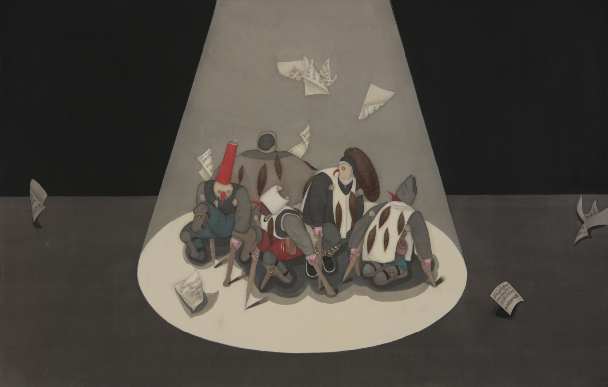18年在中国艺术研究院深造,新工笔的理念也让他的作品更加的焕然一新。他在古圣先贤中汲取力量,在大师巅峰之作中找寻灵感,创作出系列作品《愚界》,源自老子哲学与博斯的超现实画作,却绝不仅仅是致敬经典,而是一次大胆的重新诠释。在作品中,王树祥隐藏了许多发人深省的细节:画面中的哪些元素是灵光乍现的即兴之作?哪些又是他对生活深刻感悟的体现?这一切等待你去解读。