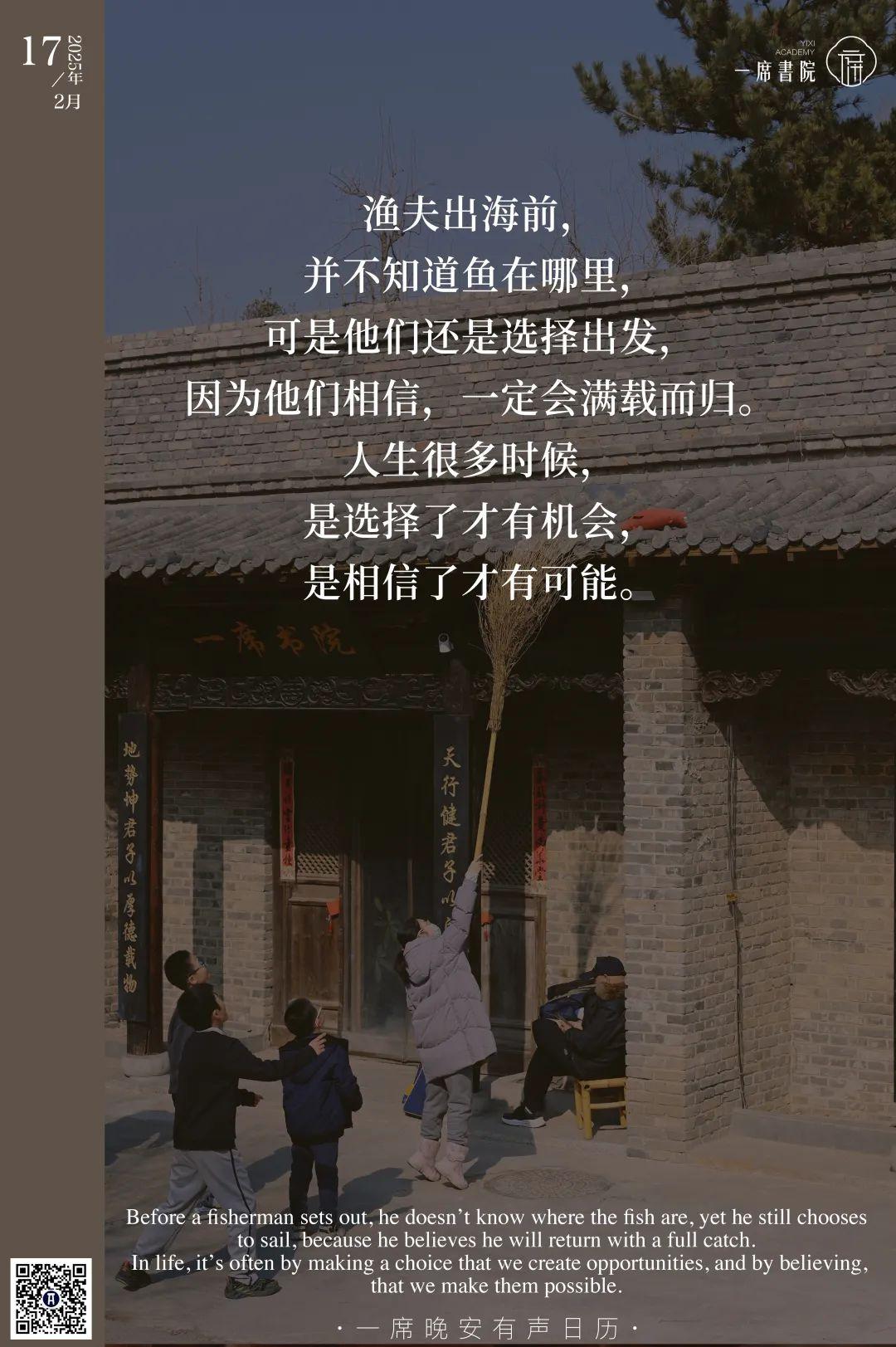 渔夫出海前,并不知道鱼在哪里,可是他们还是选择出发,因为他们相信,一定会满载而归。人生很多时候,是选择了才有机会,是相信了才有可能。
