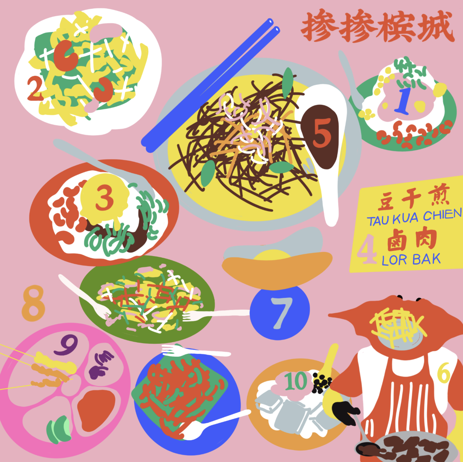 这一期里提到的一些食物 白咖喱面 Asam Laksa 炒粿条、红豆冰、卤肉 煎蕊 酿豆腐 客家面 根-午间套餐 可以无限续冰的黑糖刨冰 汕头卤味 Rojak 福建炒 Mee Sotong 鱿鱼炒面 & 沙爹牛肉牛肚 “鲜鱼”沙拉 红豆冰