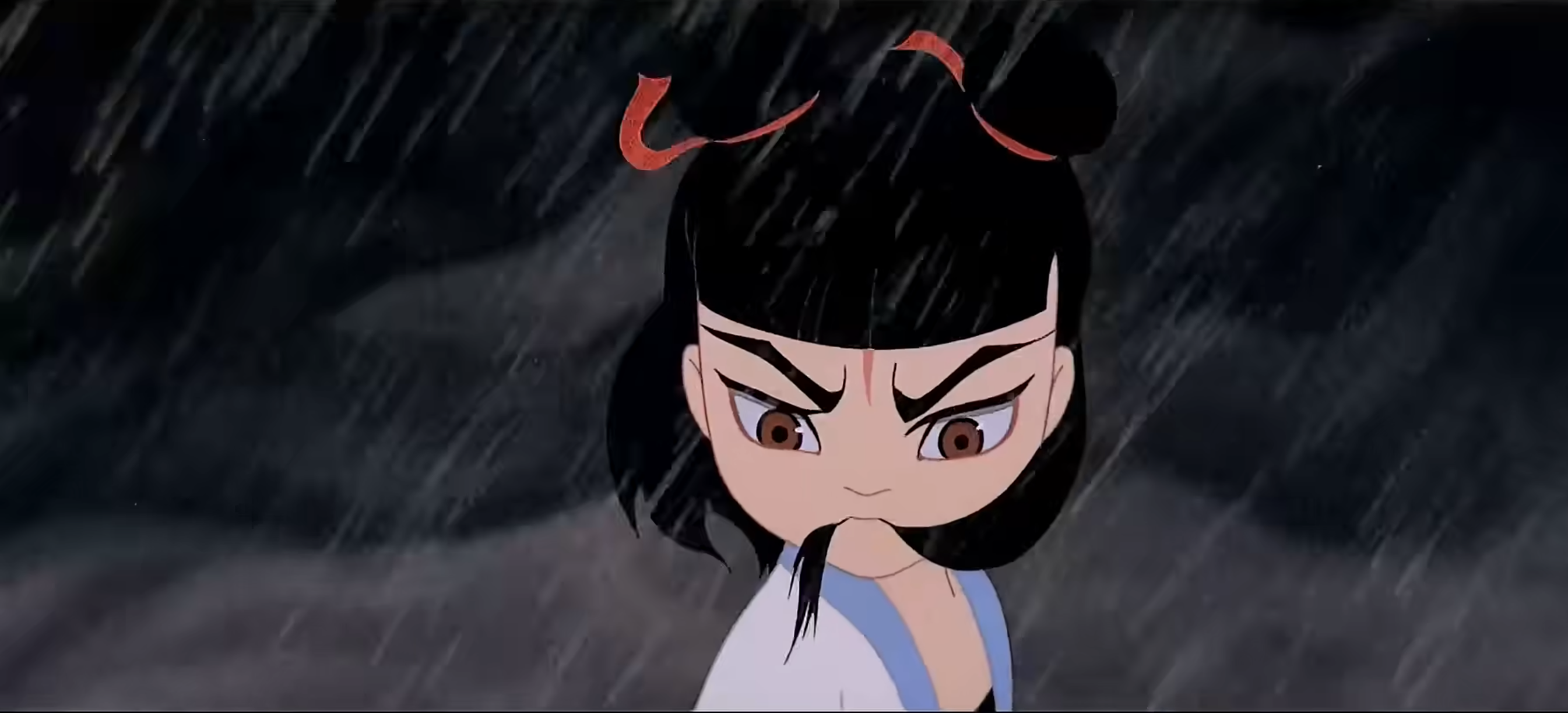 4-在哪吒闹海的二维世界里,哪吒的叛逆不是打打杀杀的战争和炫酷的动作,而是一条吴带当风的红绫,是那个雨夜里,纷乱又滴滴砸在人心上的雨滴。